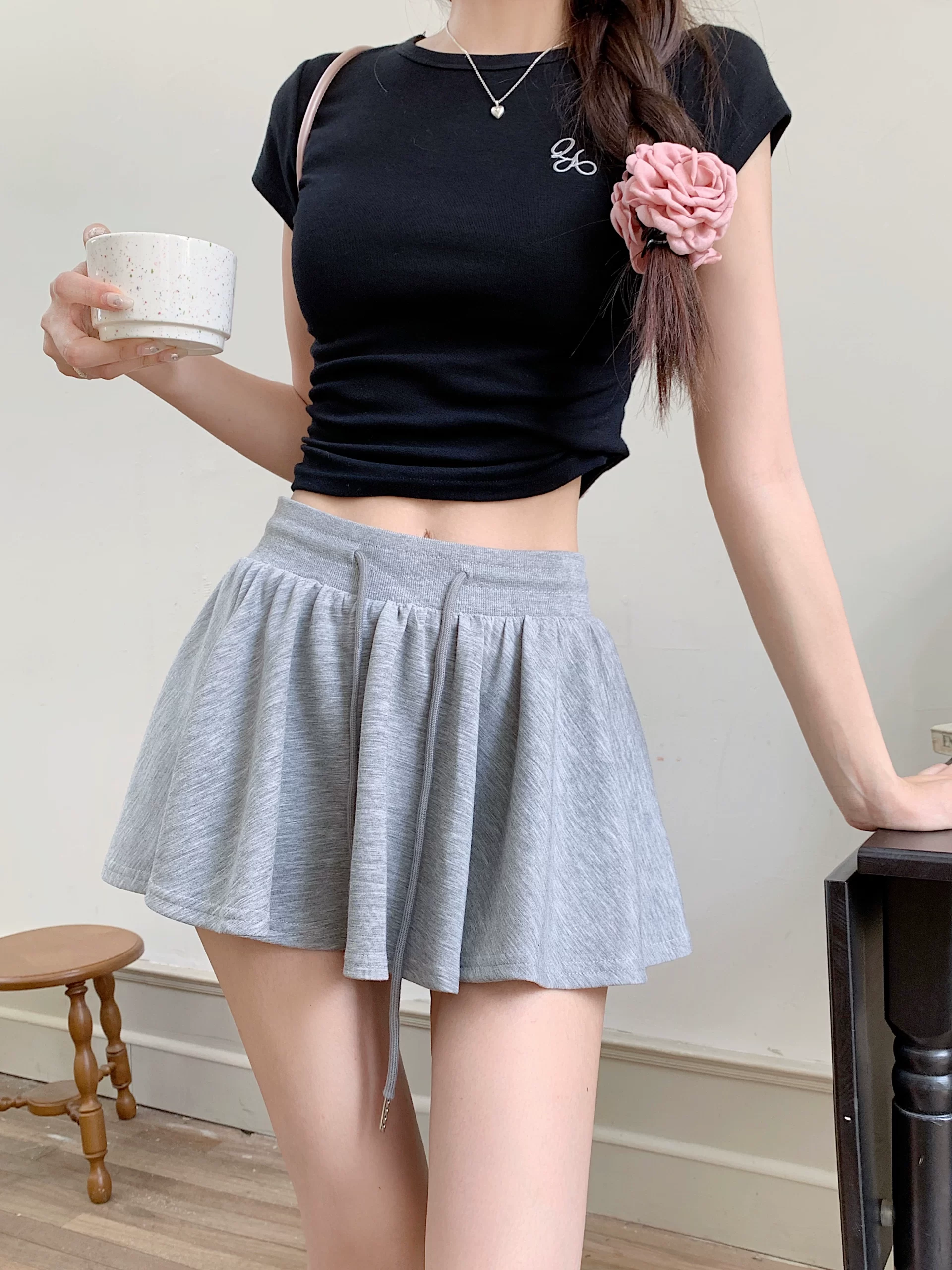 | nameOriginal | Retro petite anti-exposure A-line skirt with drawstring |