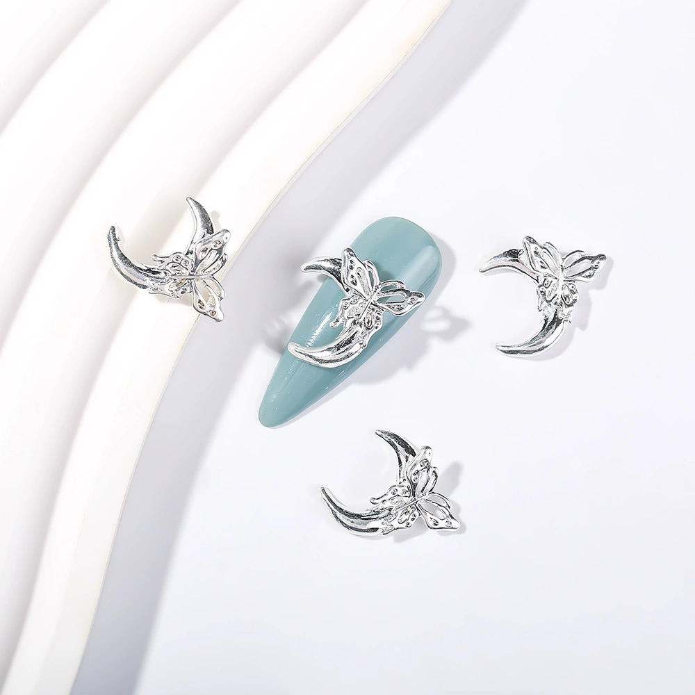 | nameOriginal | Retro pin gold and silver alloy nail art jewelry butterfly chain moon bat rose versatile decoration Japanese style |