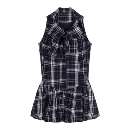 | nameOriginal | Retro plaid lapel summer niche a-line skirt and vest |