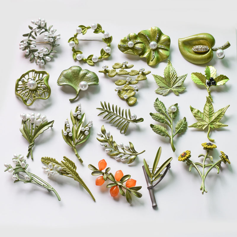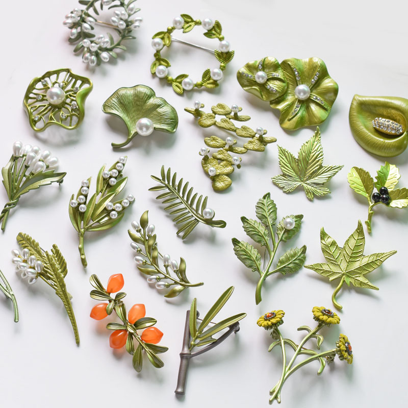 | nameOriginal | Retro plant leaf brooch simple elegant fresh artistic leaf pearl flower pin corsage clothing accessories |