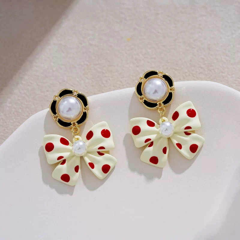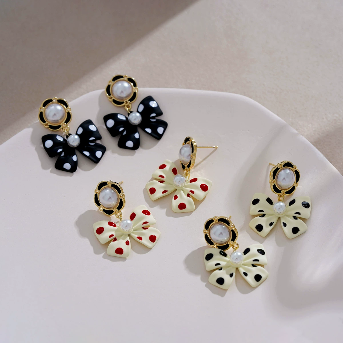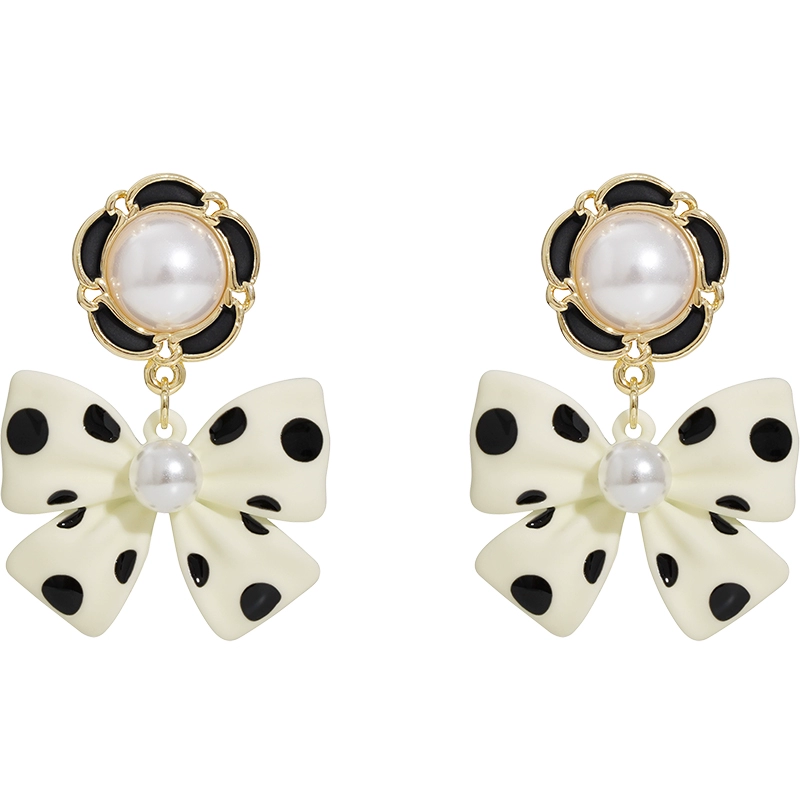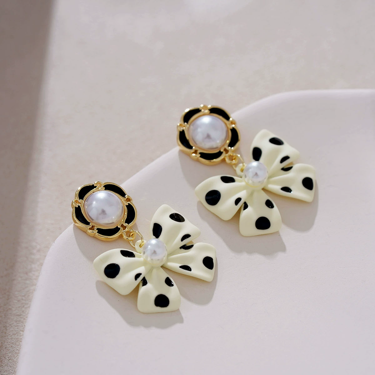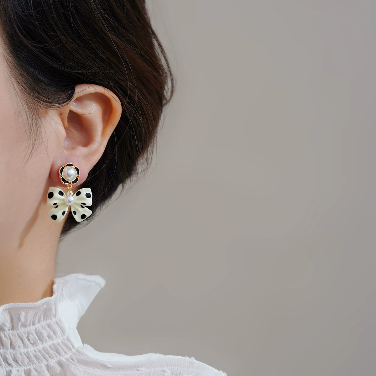 | nameOriginal | Retro polka dot bow earrings niche gentle design black butterfly earrings French Hepburn style earrings for women |