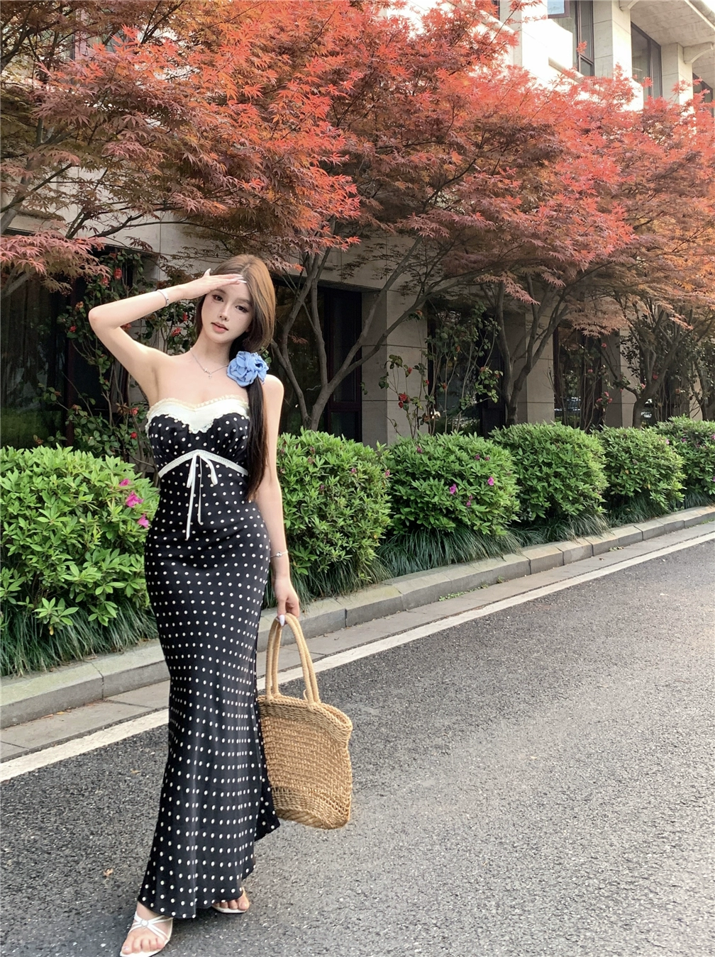 | nameOriginal | Retro polka dot tube top dress summer backless lace |