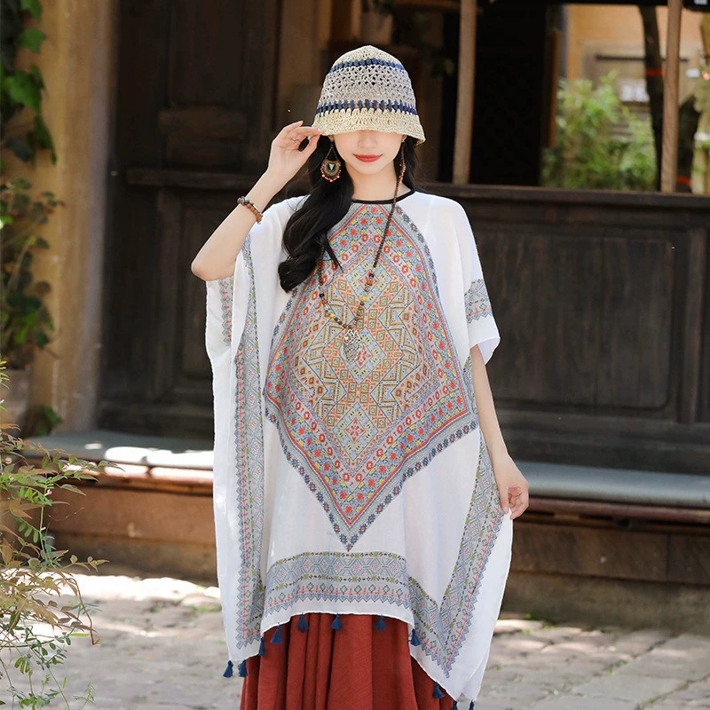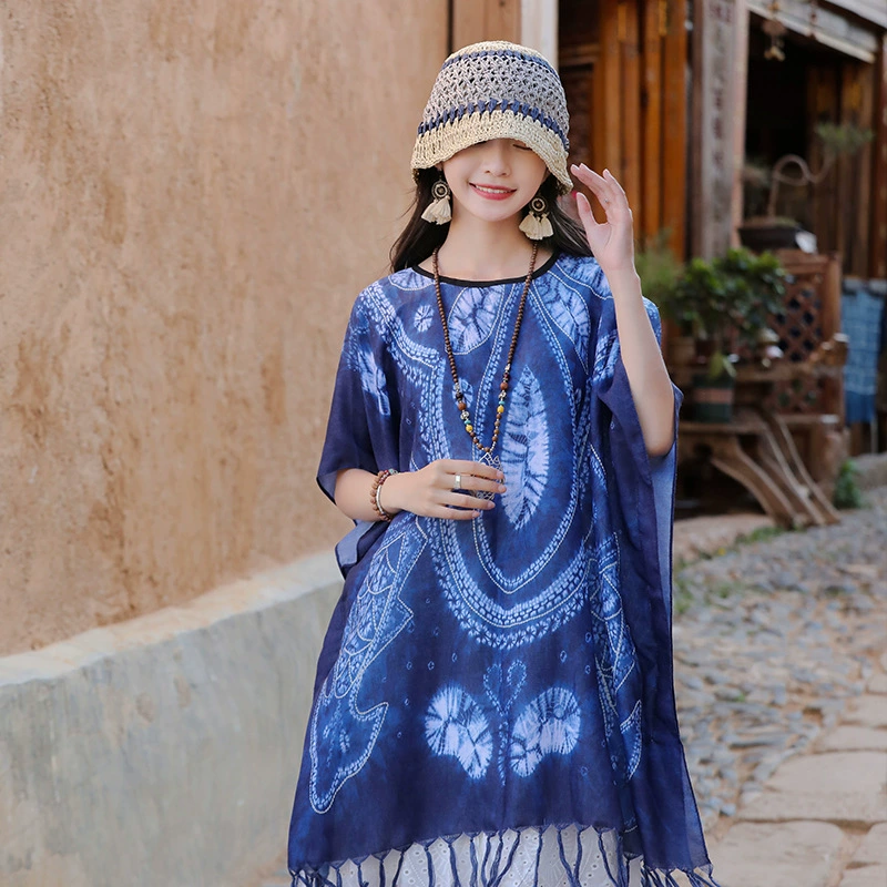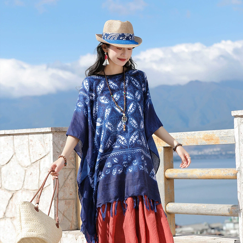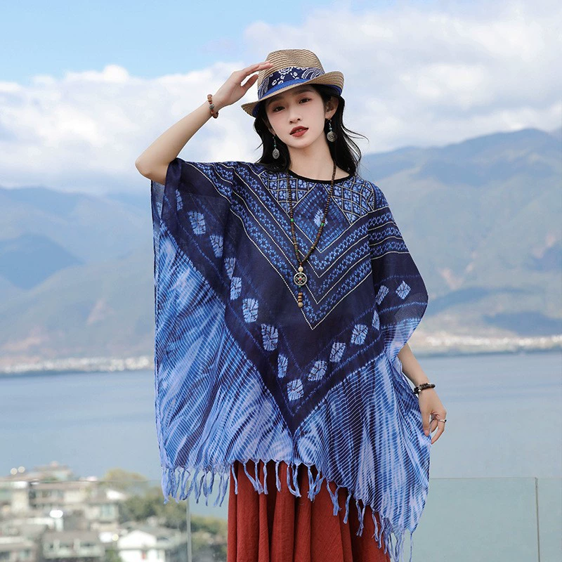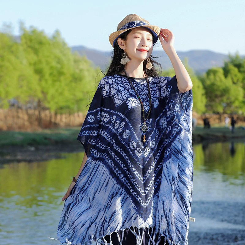 | nameOriginal | Retro polycotton tie-dye women's top straw hat cloak shawl |