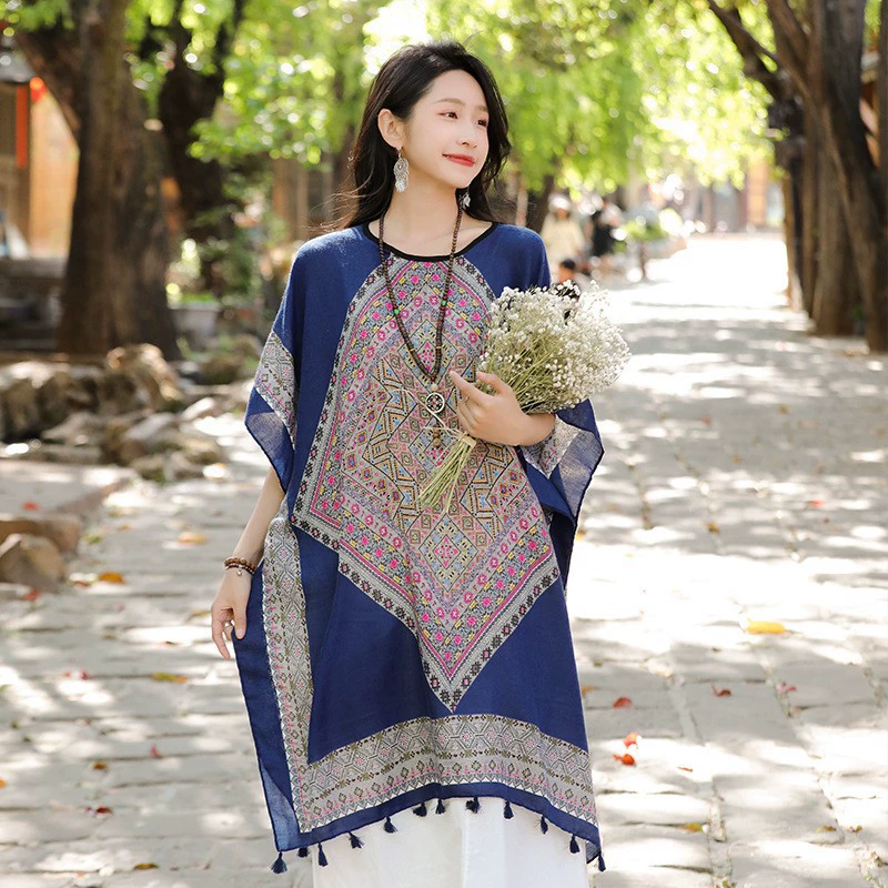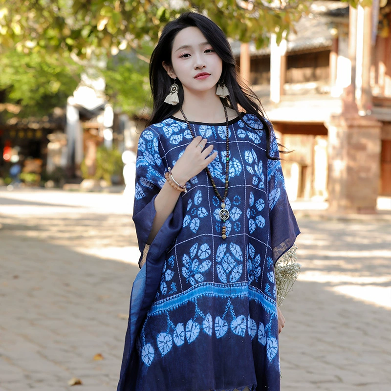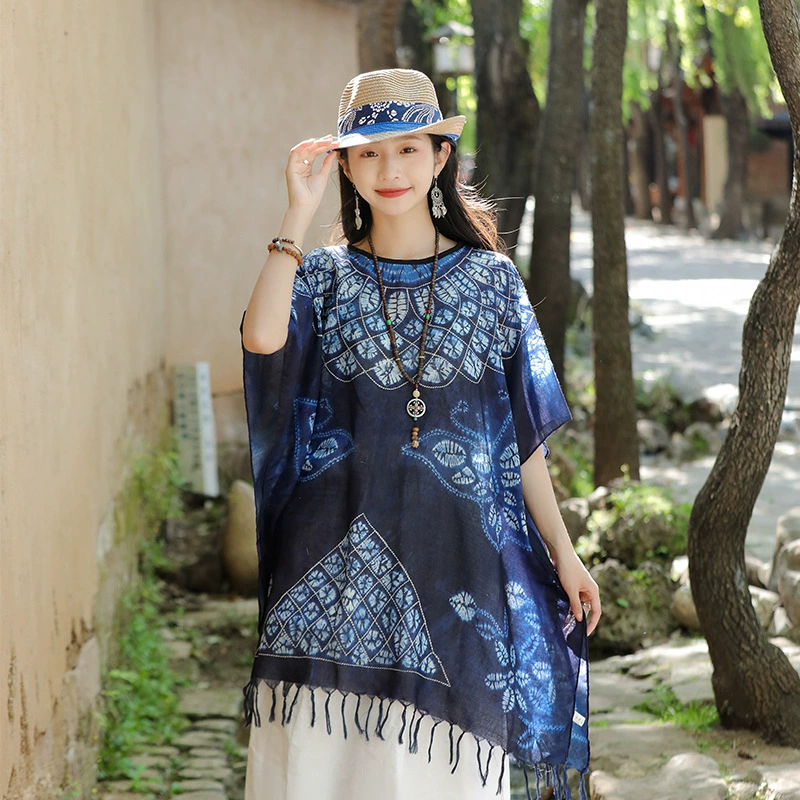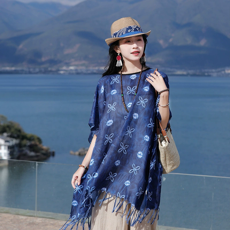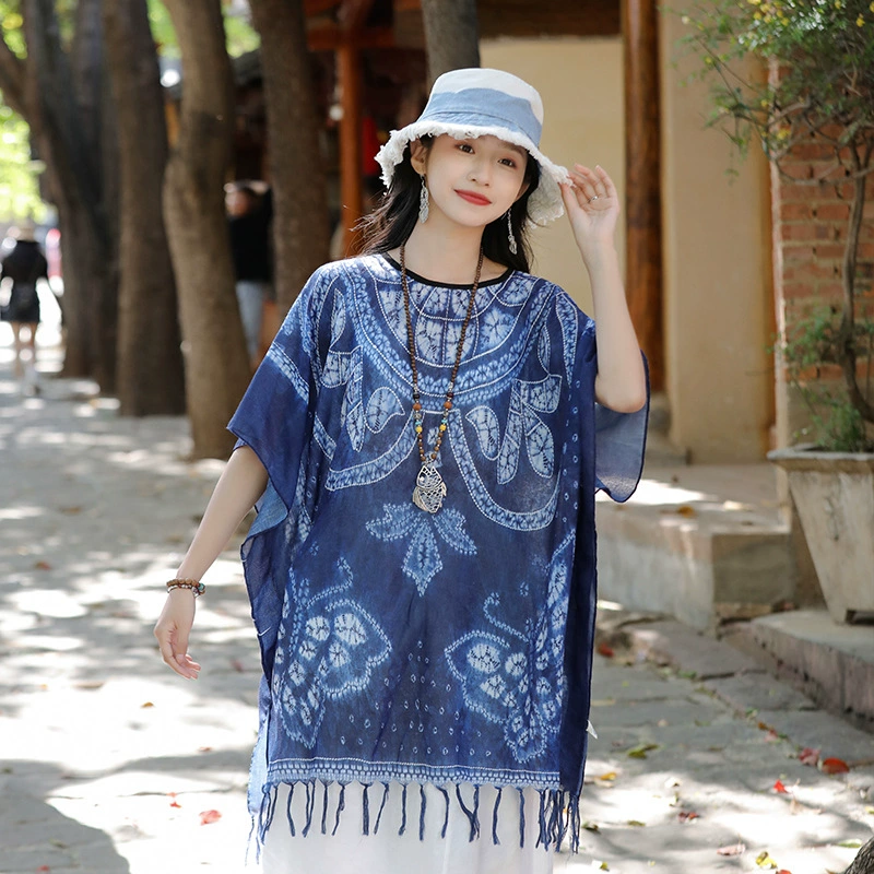 | nameOriginal | Retro polycotton tie-dye women's top straw hat cloak shawl |