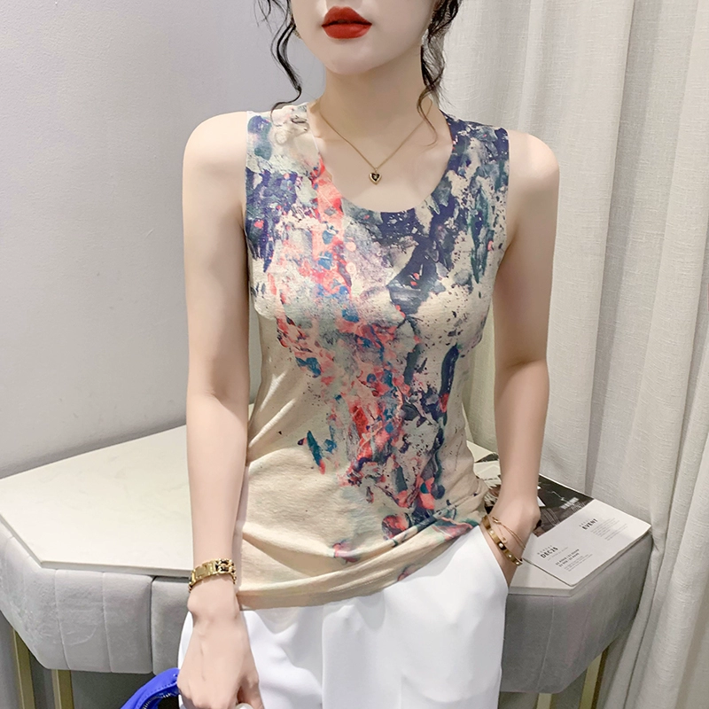 | nameOriginal | Retro printed small camisole women's summer new style outer wear foreign style inner wear slim fit back sleeveless bottoming top |
