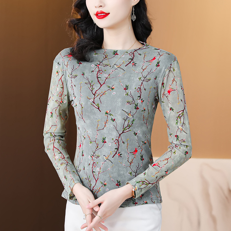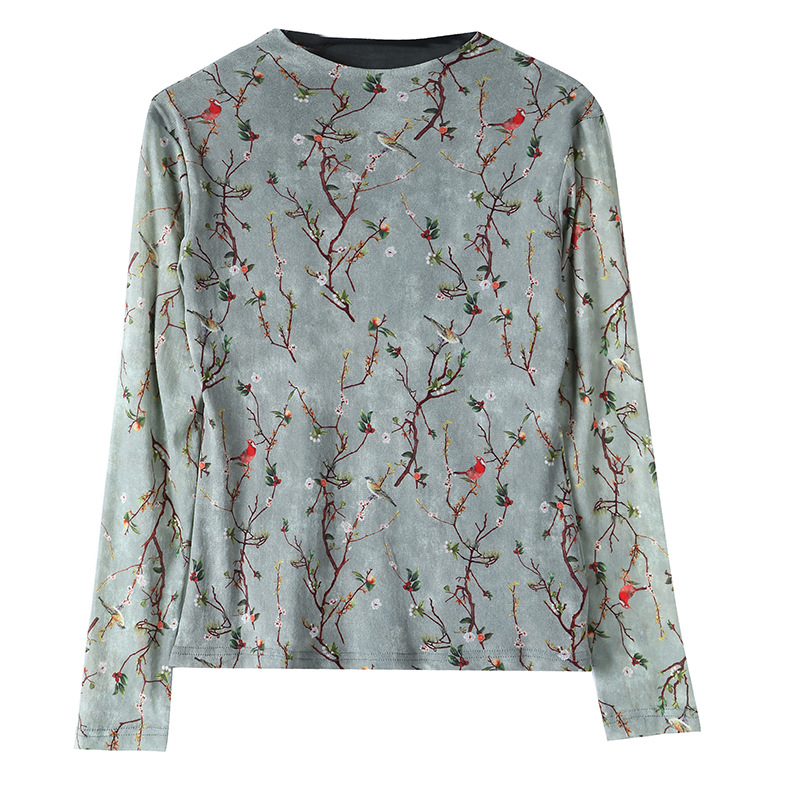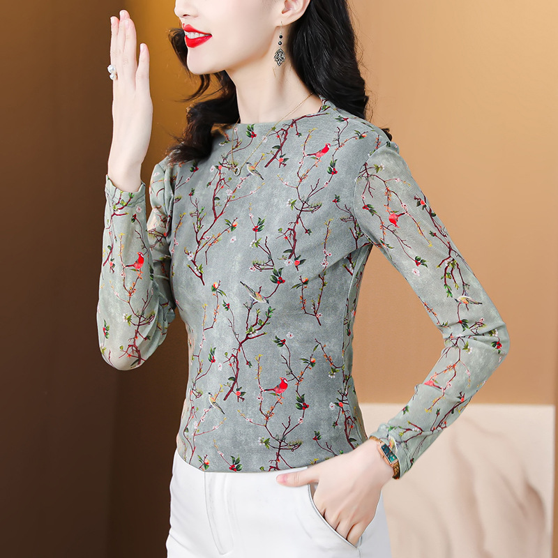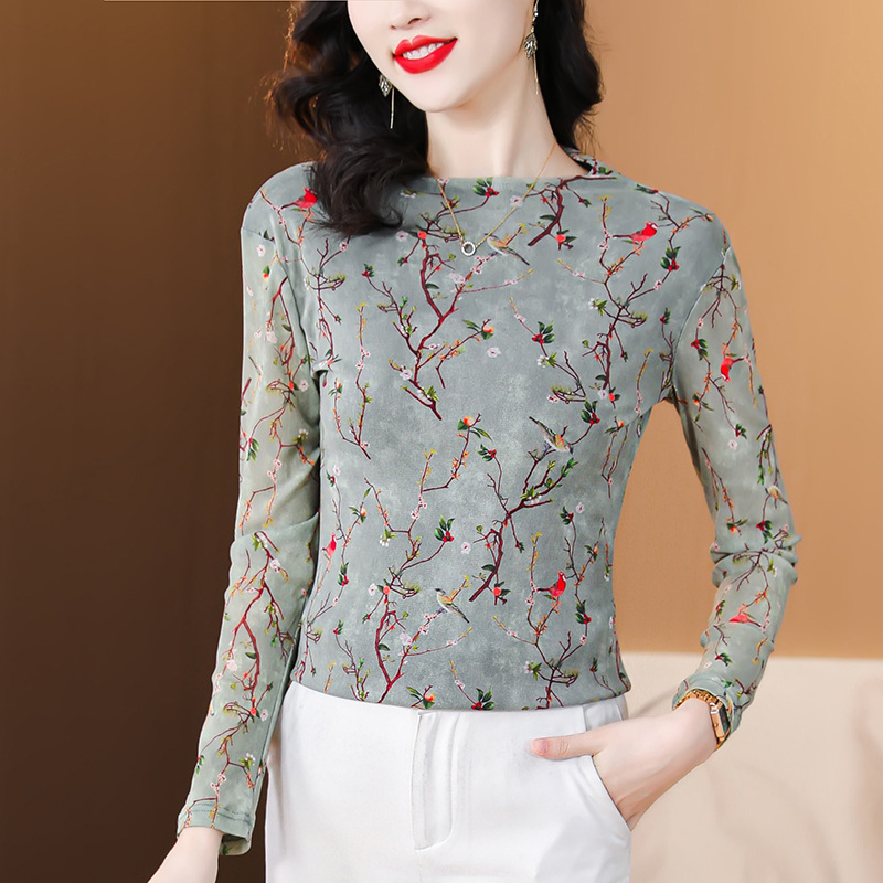 | nameOriginal | Retro printed stretch mesh bottoming shirt 2024 spring new fashion versatile elegant half turtleneck top |