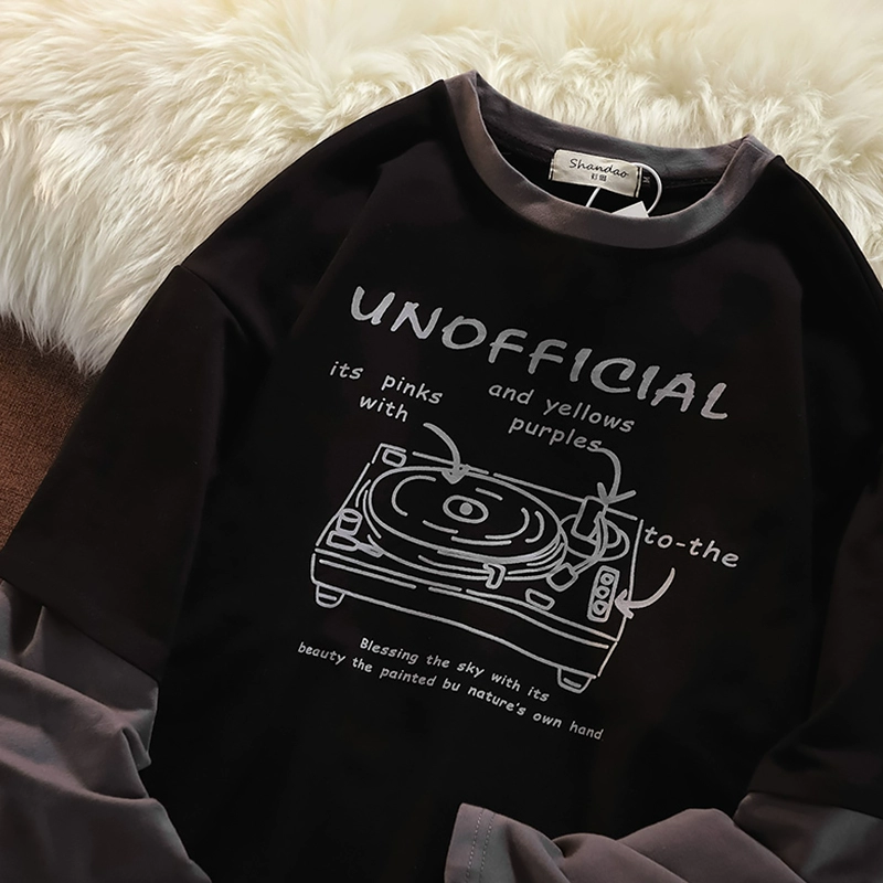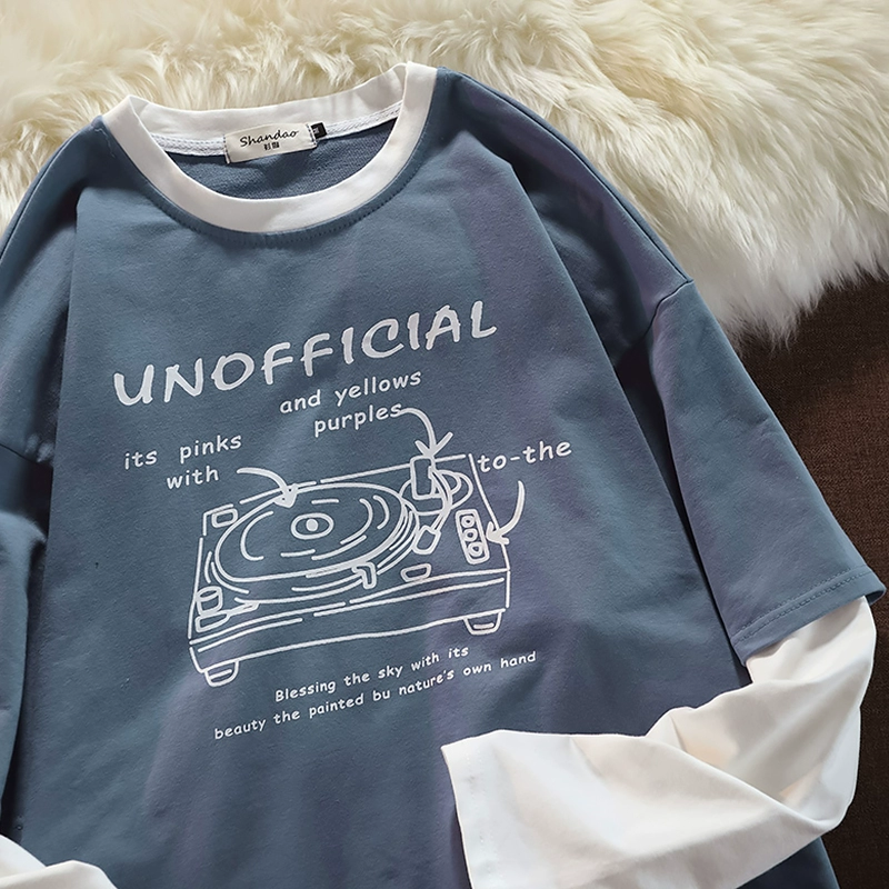 Retro printed sweatshirt oversize long sleeve fake two pieces