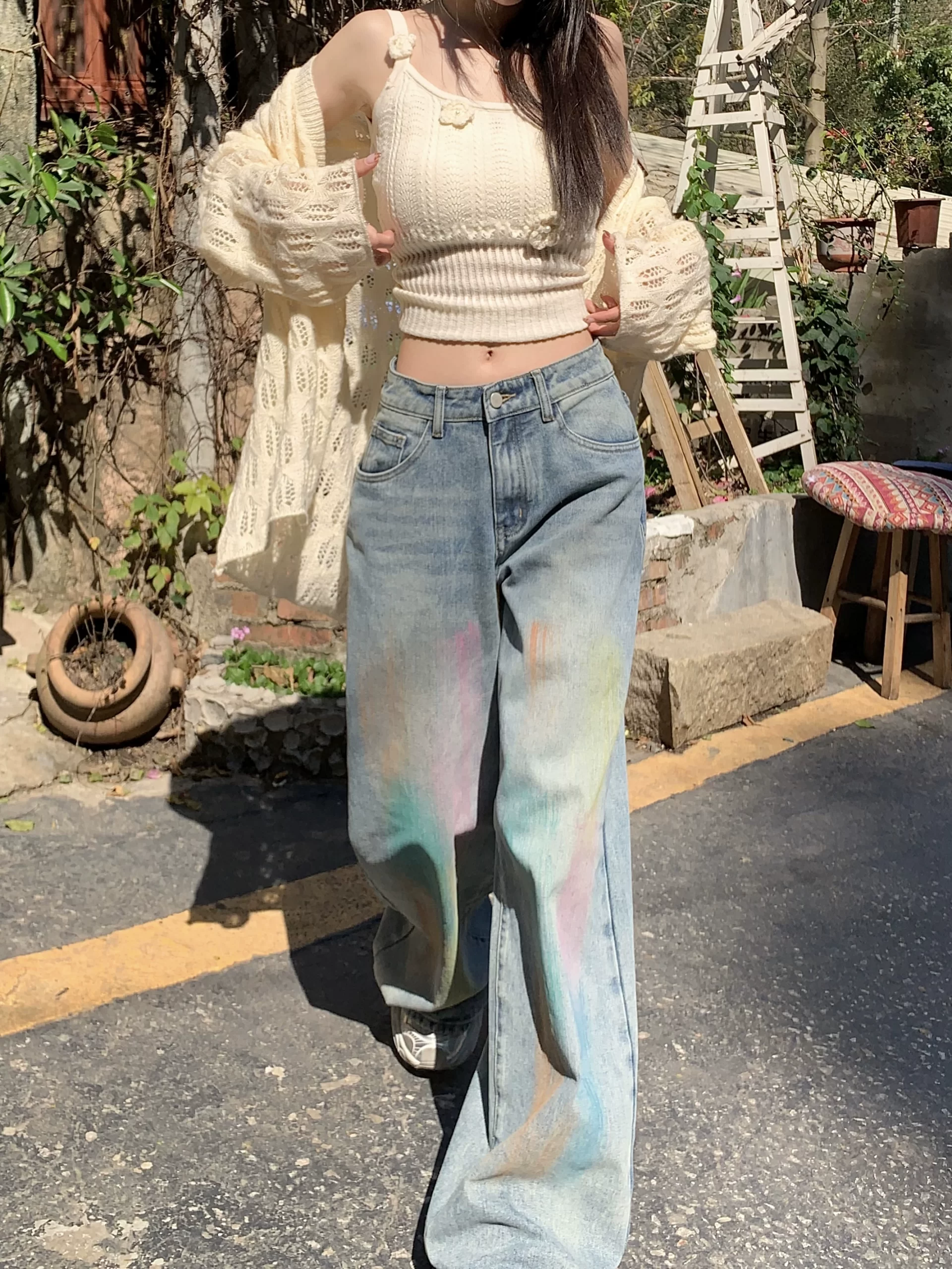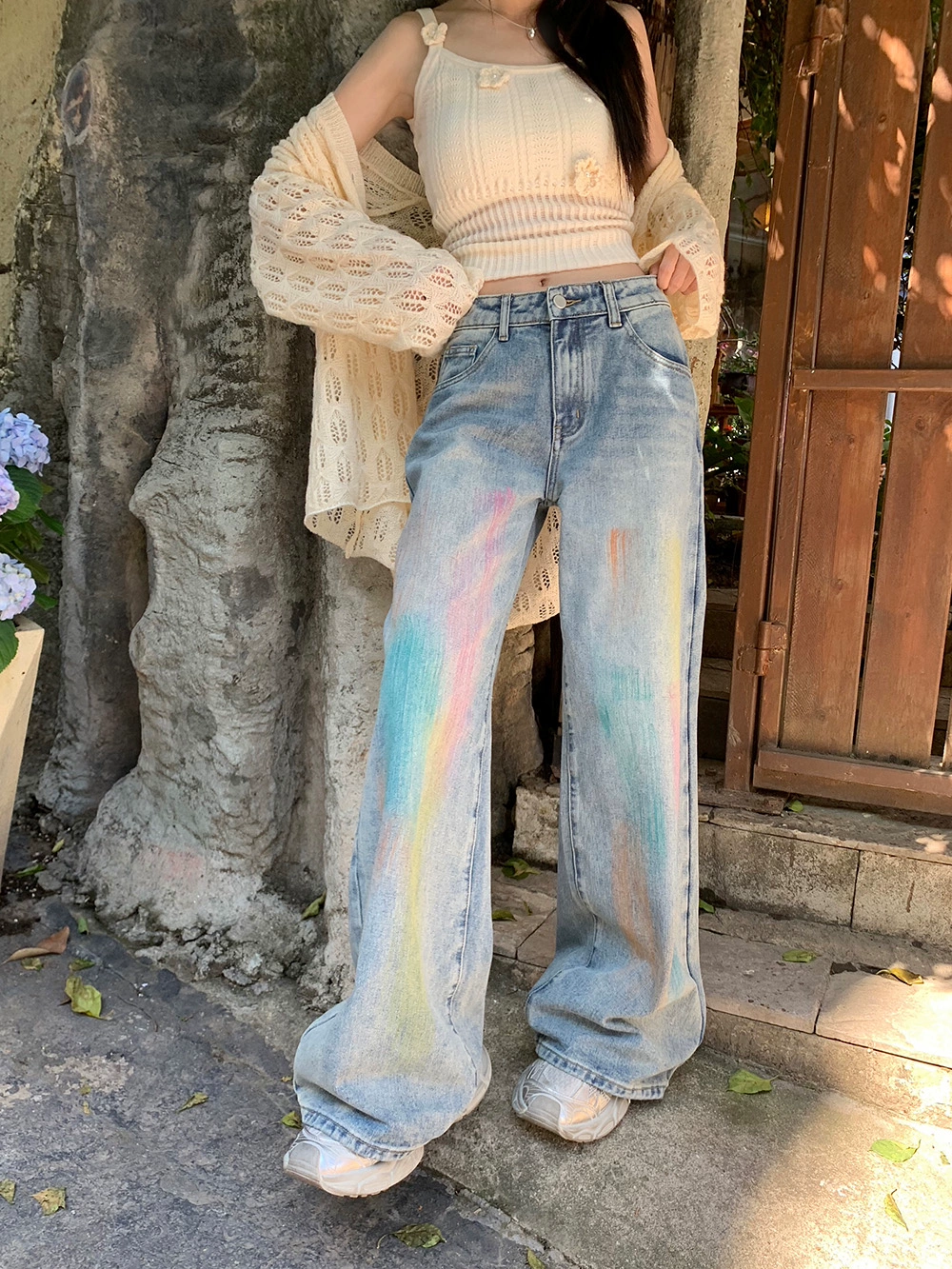 | nameOriginal | Retro rainbow gradient high waist design jeans |