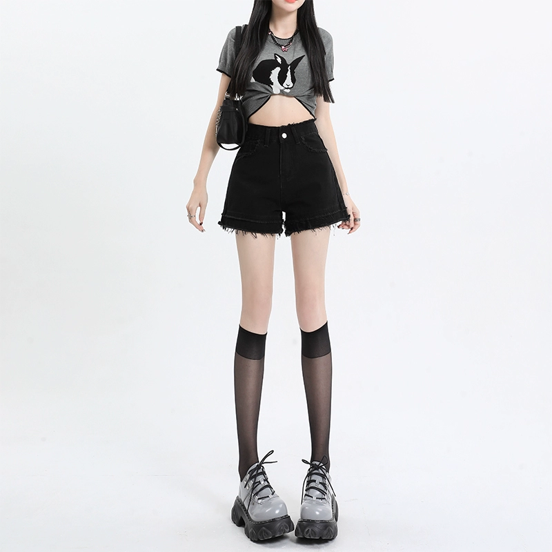 | nameOriginal | Retro raw edge high-waisted A-line fringed denim shorts |