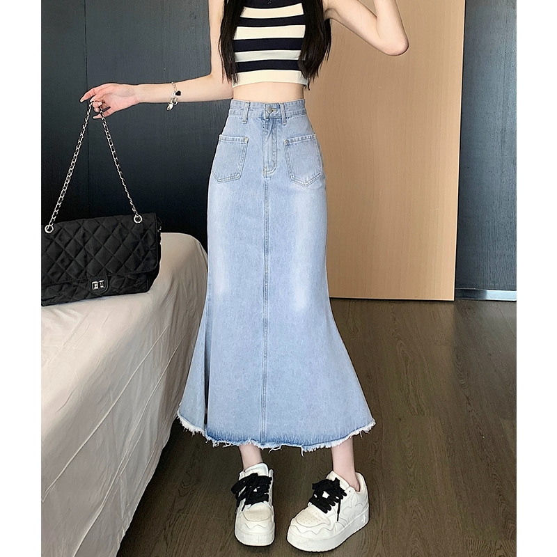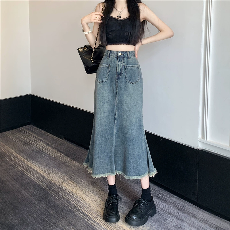 | nameOriginal | Retro raw edge mid-length fishtail denim skirt |
