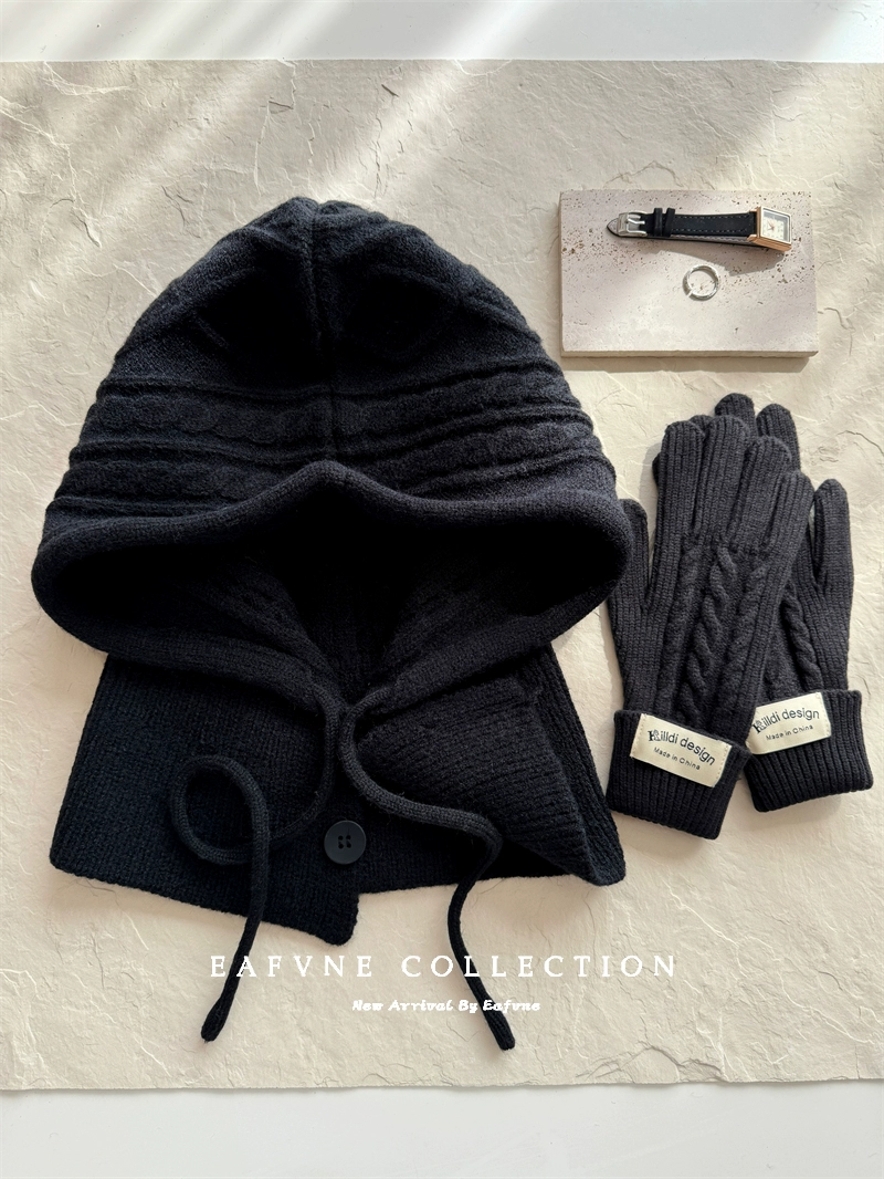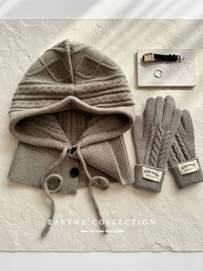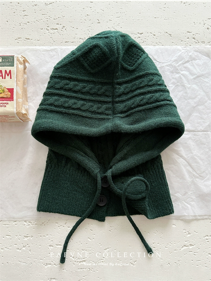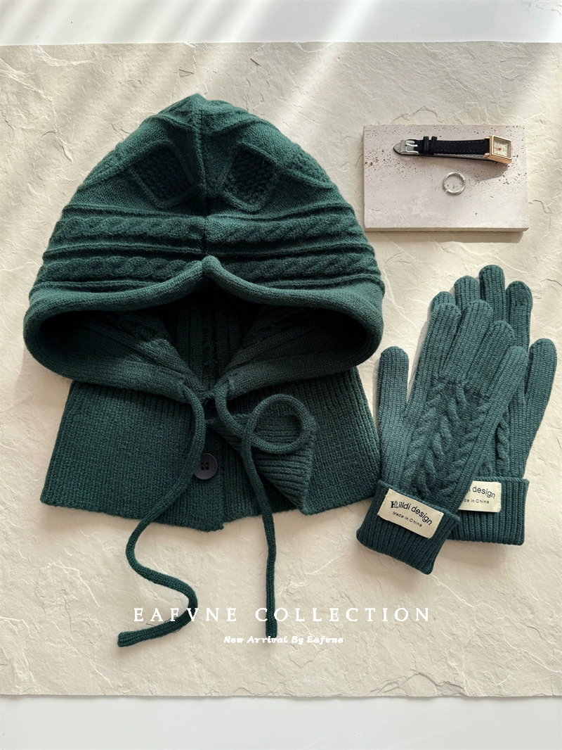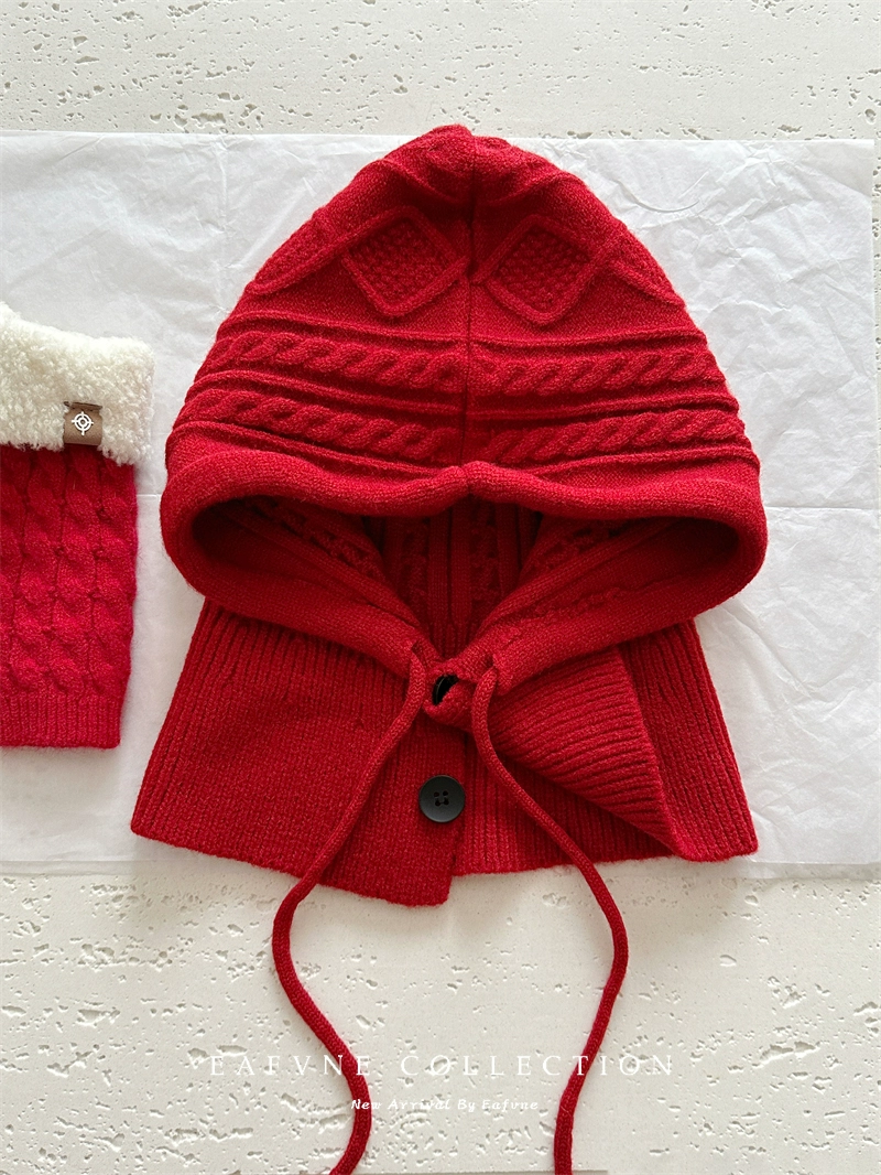 Retro red balaclava hat for women, winter warm hat, neck scarf, couple ear protection woolen knitted hat