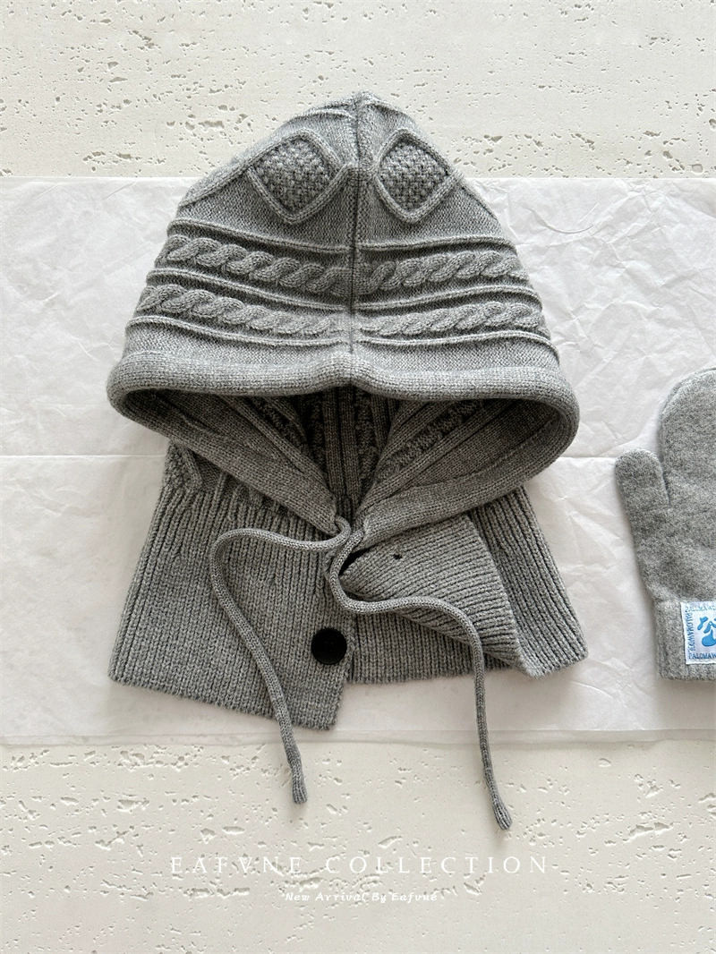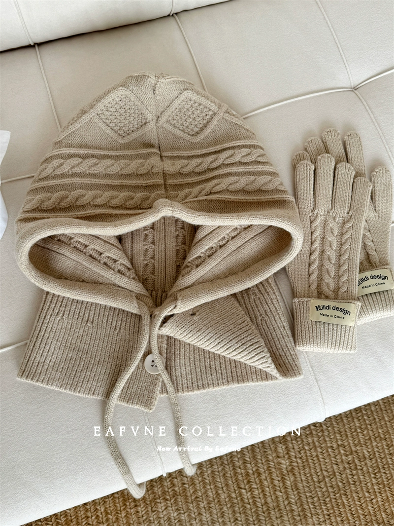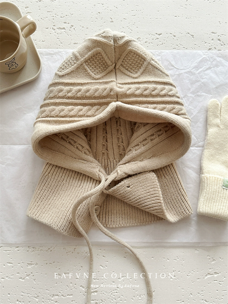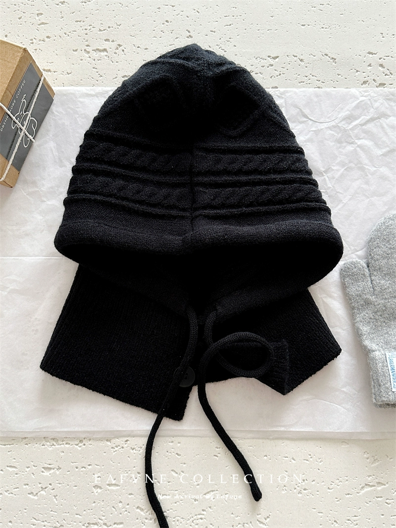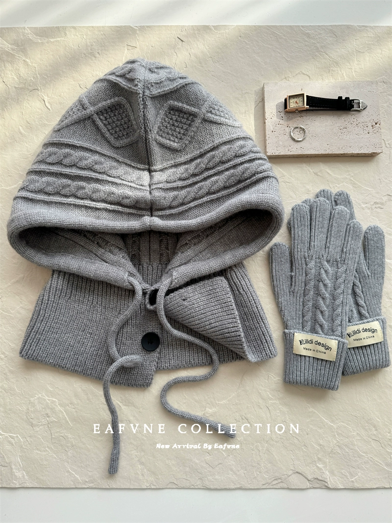Retro red balaclava hat for women, winter warm hat, neck scarf, couple ear protection woolen knitted hat