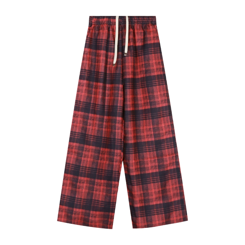 | nameOriginal | Retro red high-waist autumn loose slimming plaid pants |