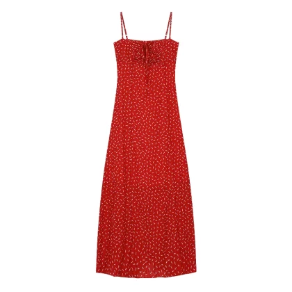 | nameOriginal | Retro red summer temperament slim floral dress |
