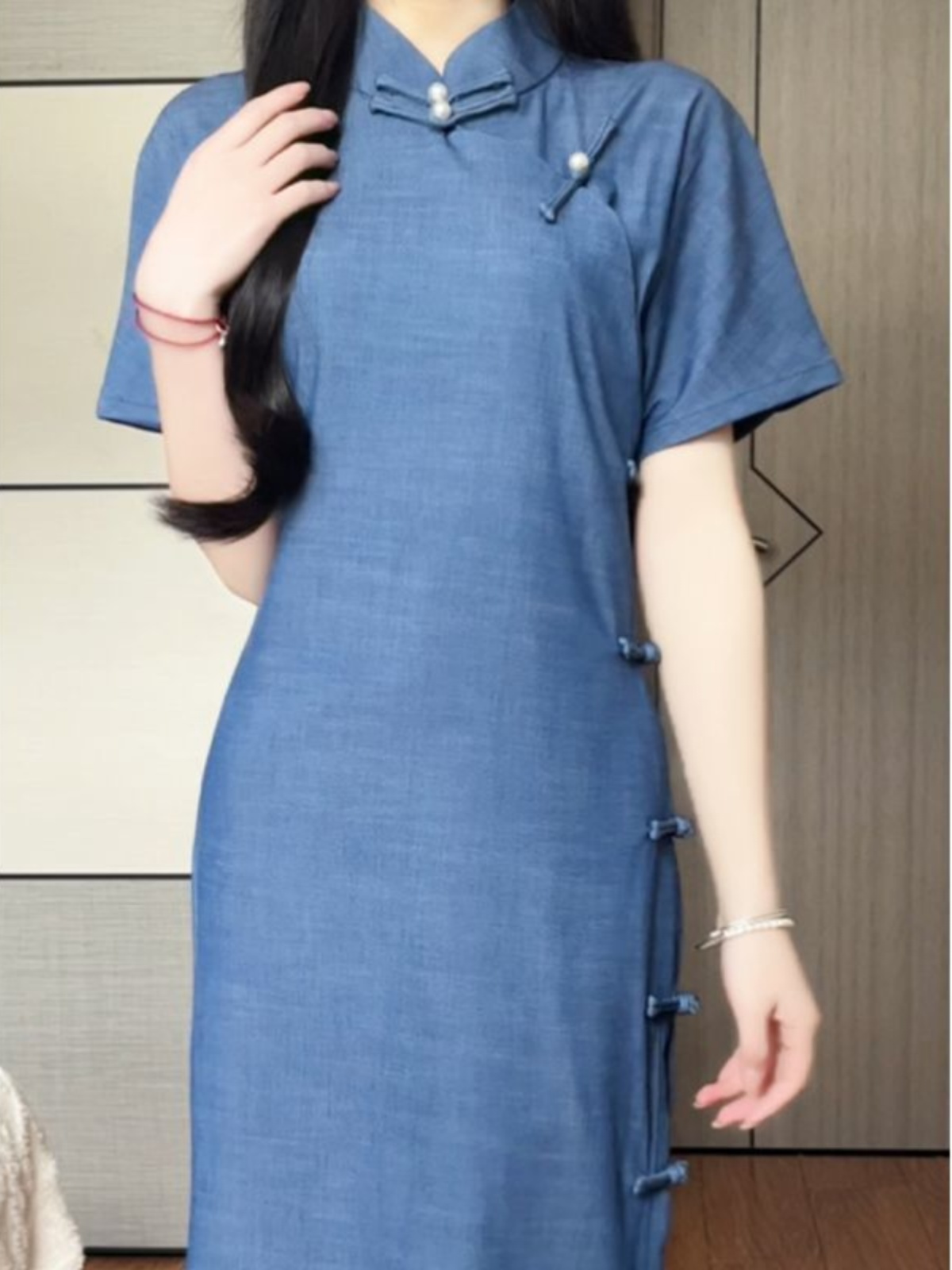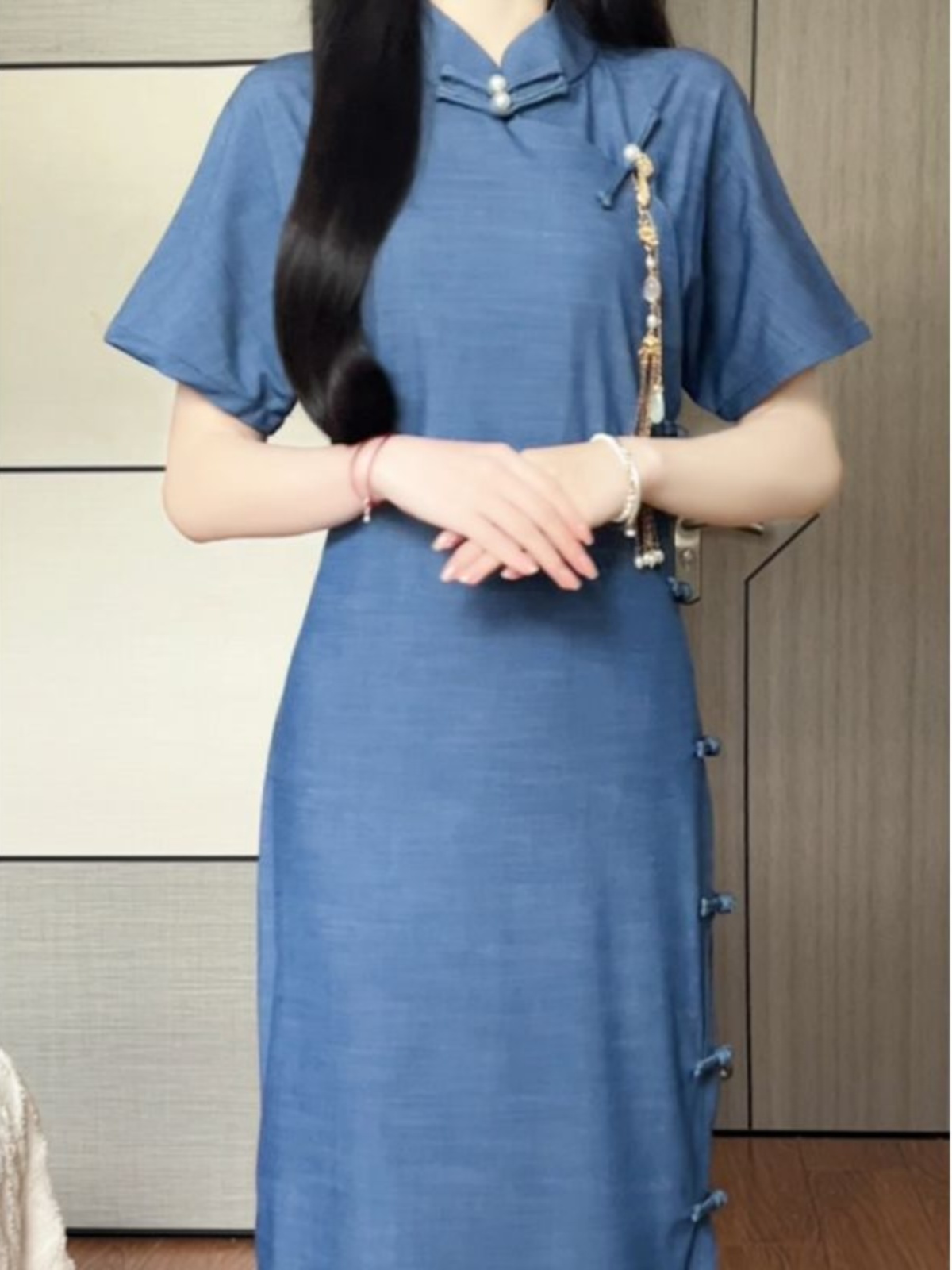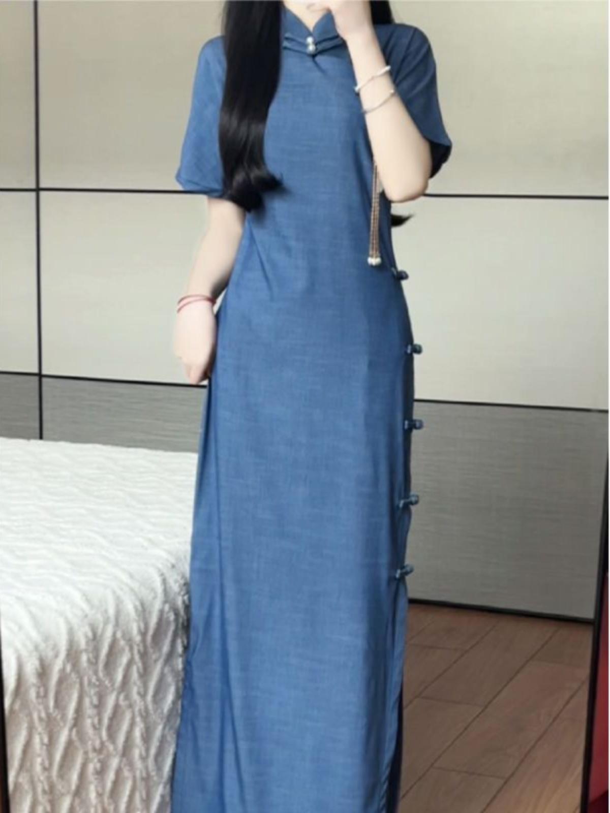 | nameOriginal | Retro Republic of China Style Girl Cheongsam Improved Blue New Summer 2024 Young Daily Literary Temperament dress |