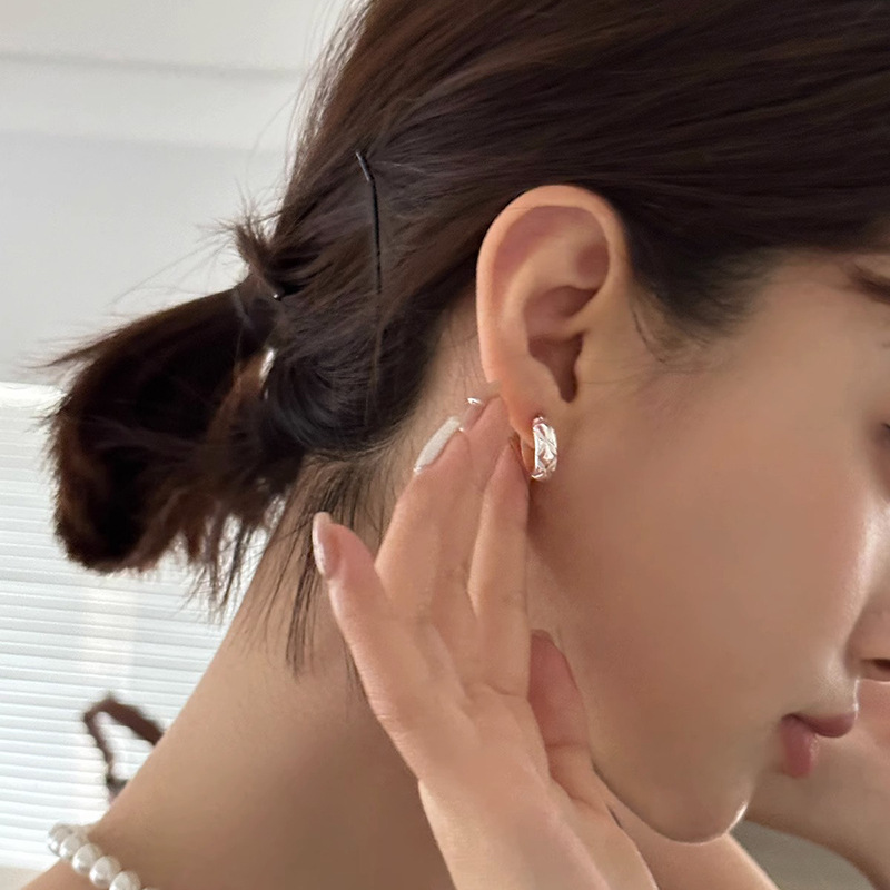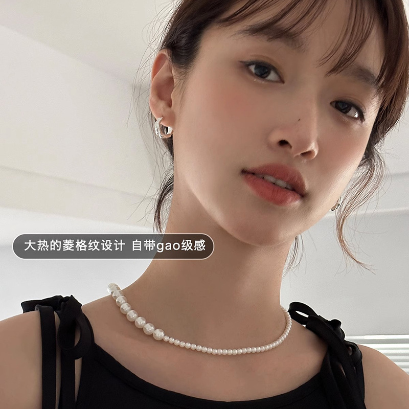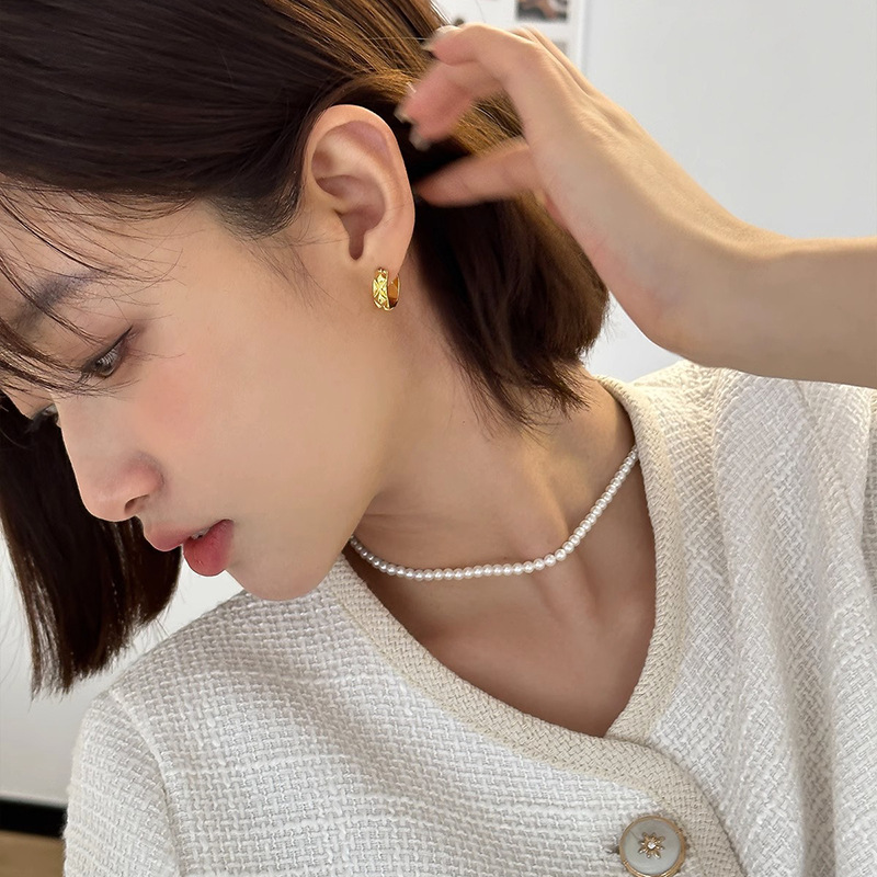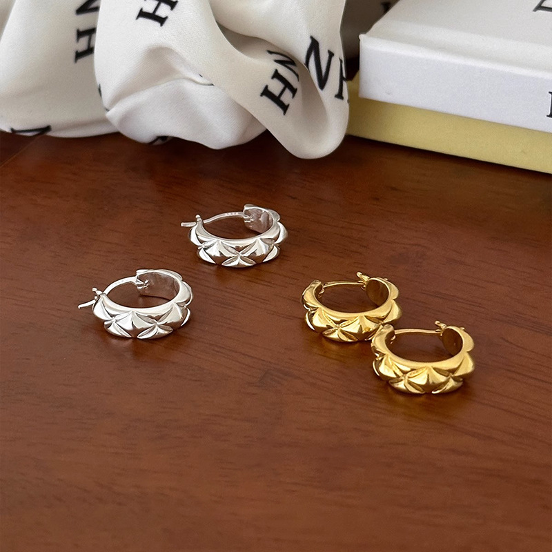 | nameOriginal | Retro rhombus earrings women's mini Chanel style geometric plaid plain ring rhombus earrings simple commuter daily earrings |