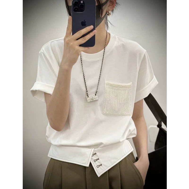 | nameOriginal | Retro right shoulder irregular niche pullover short-sleeved T-shirt |