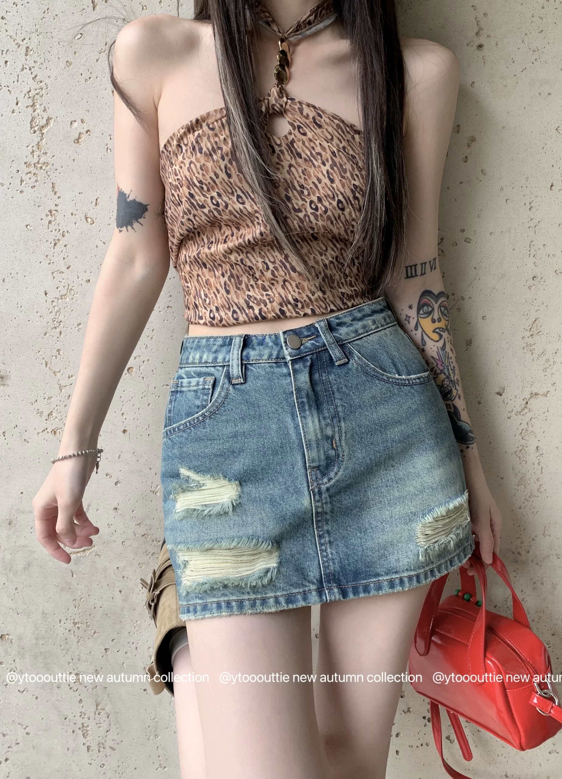 | nameOriginal | Retro ripped summer high waisted hip denim skirt |