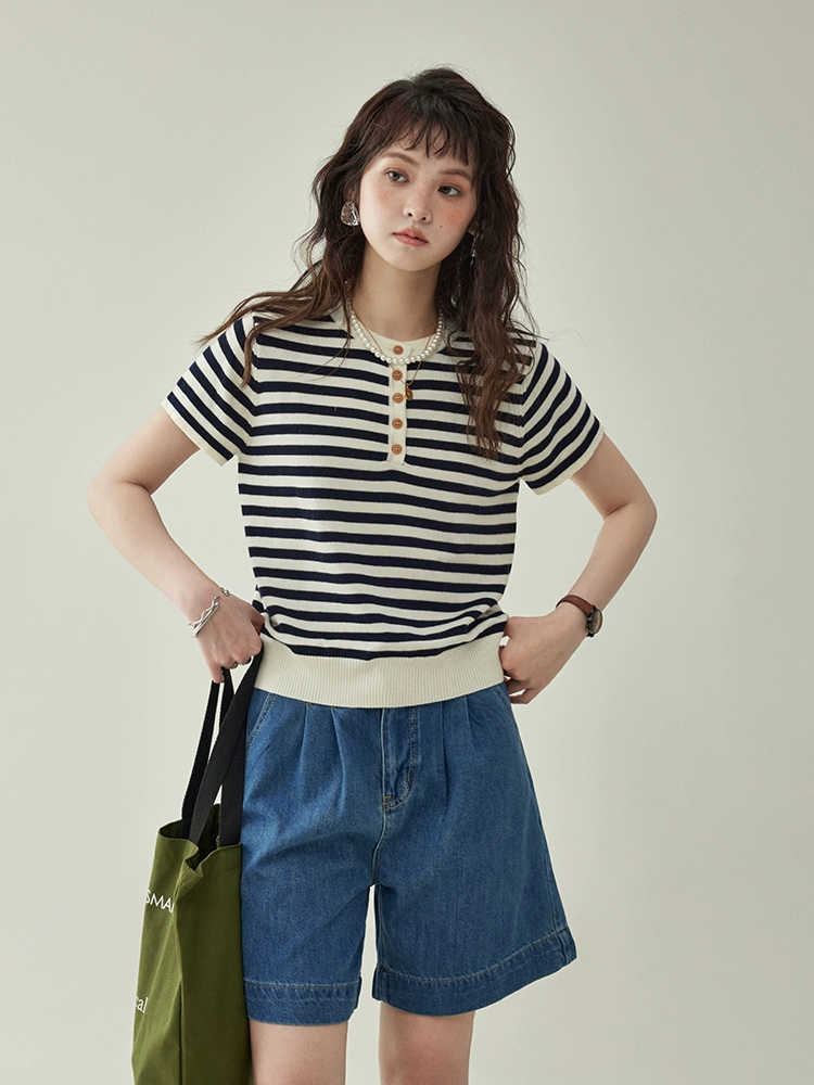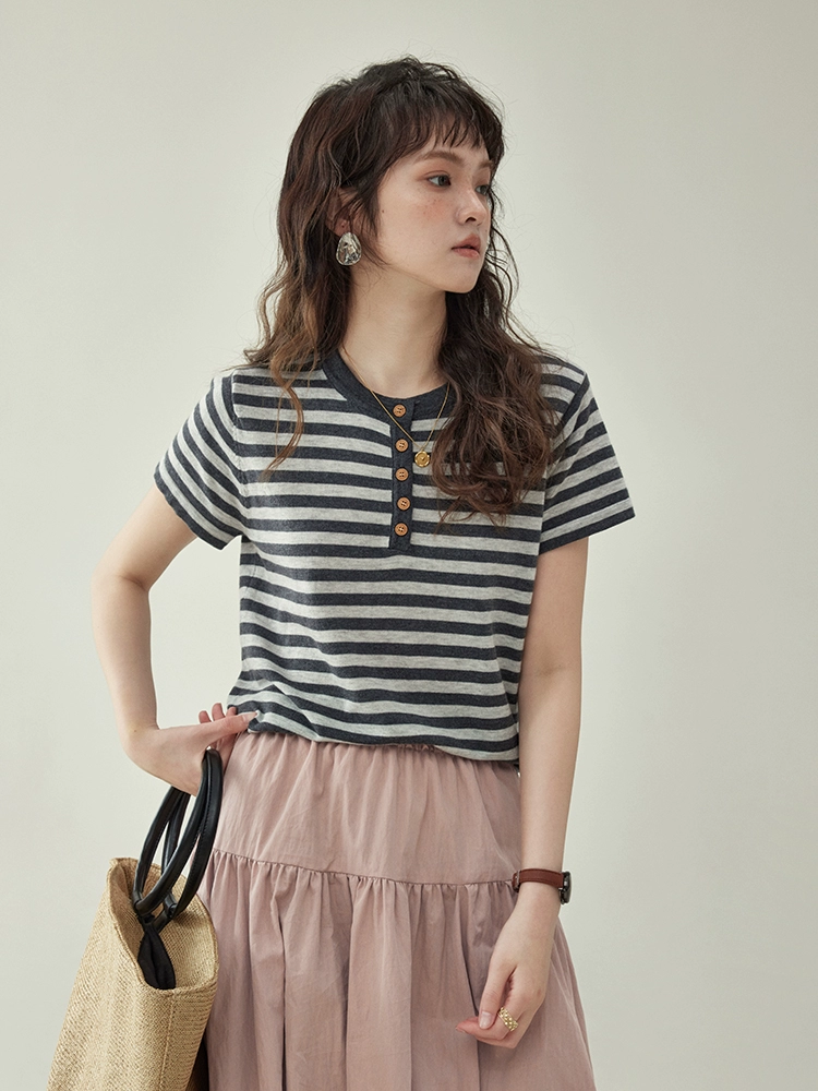 | nameOriginal | Retro round neck short-sleeved T-shirt artistic slimming sweater |