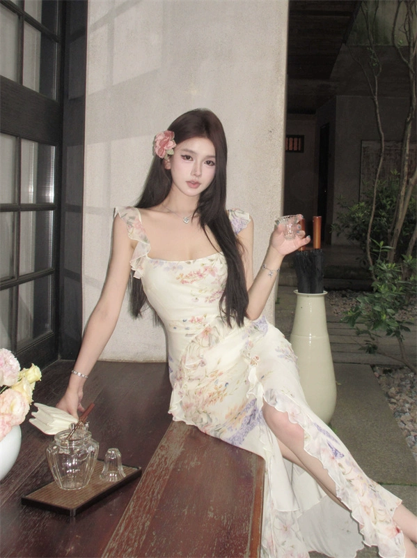 | nameOriginal | Retro ruffled summer slim-fitting suspender dress |
