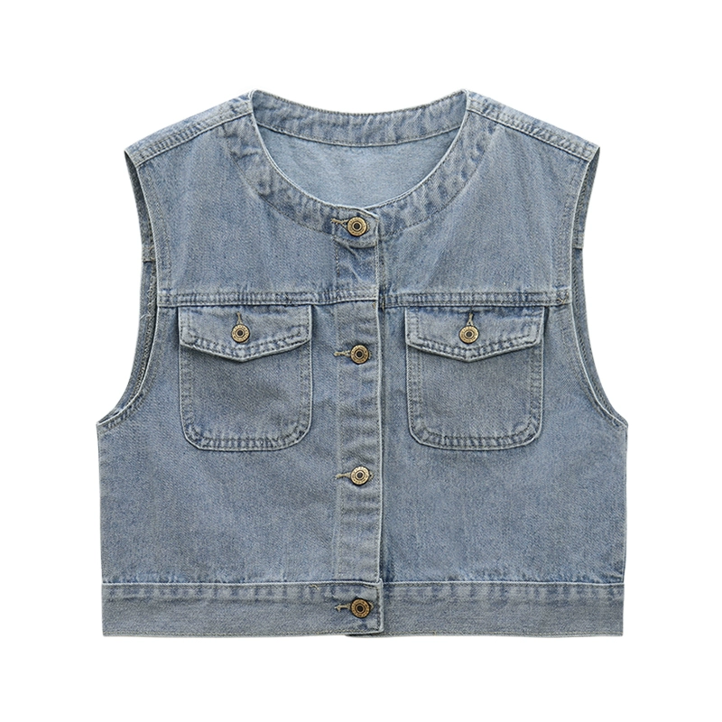 Retro short denim jacket spring top vest