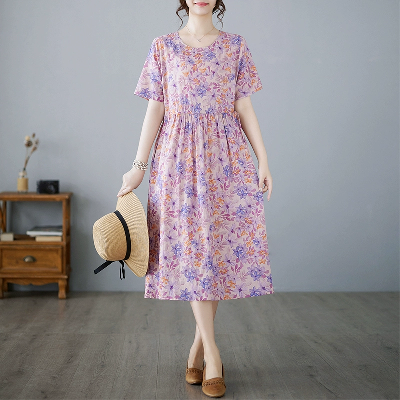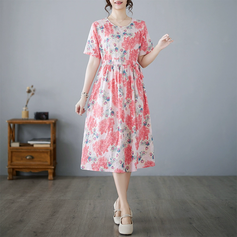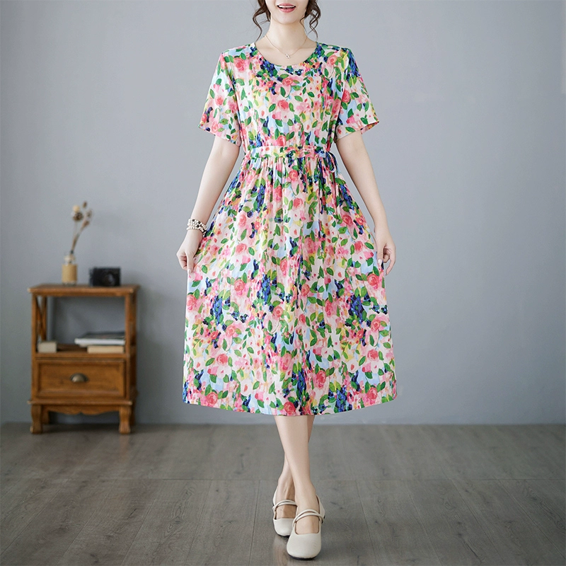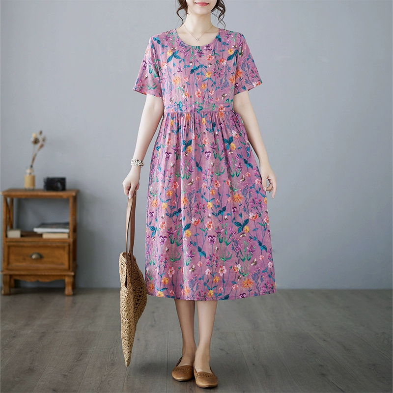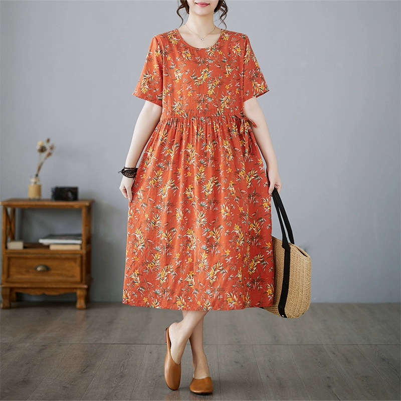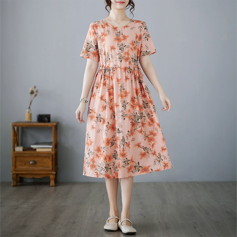 | nameOriginal | Retro short-sleeved cotton and linen dress summer drawstring art |
