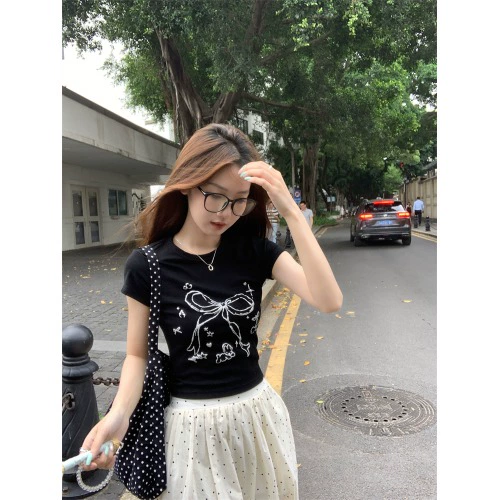| nameOriginal | Retro short-sleeved summer slim top with bow print |