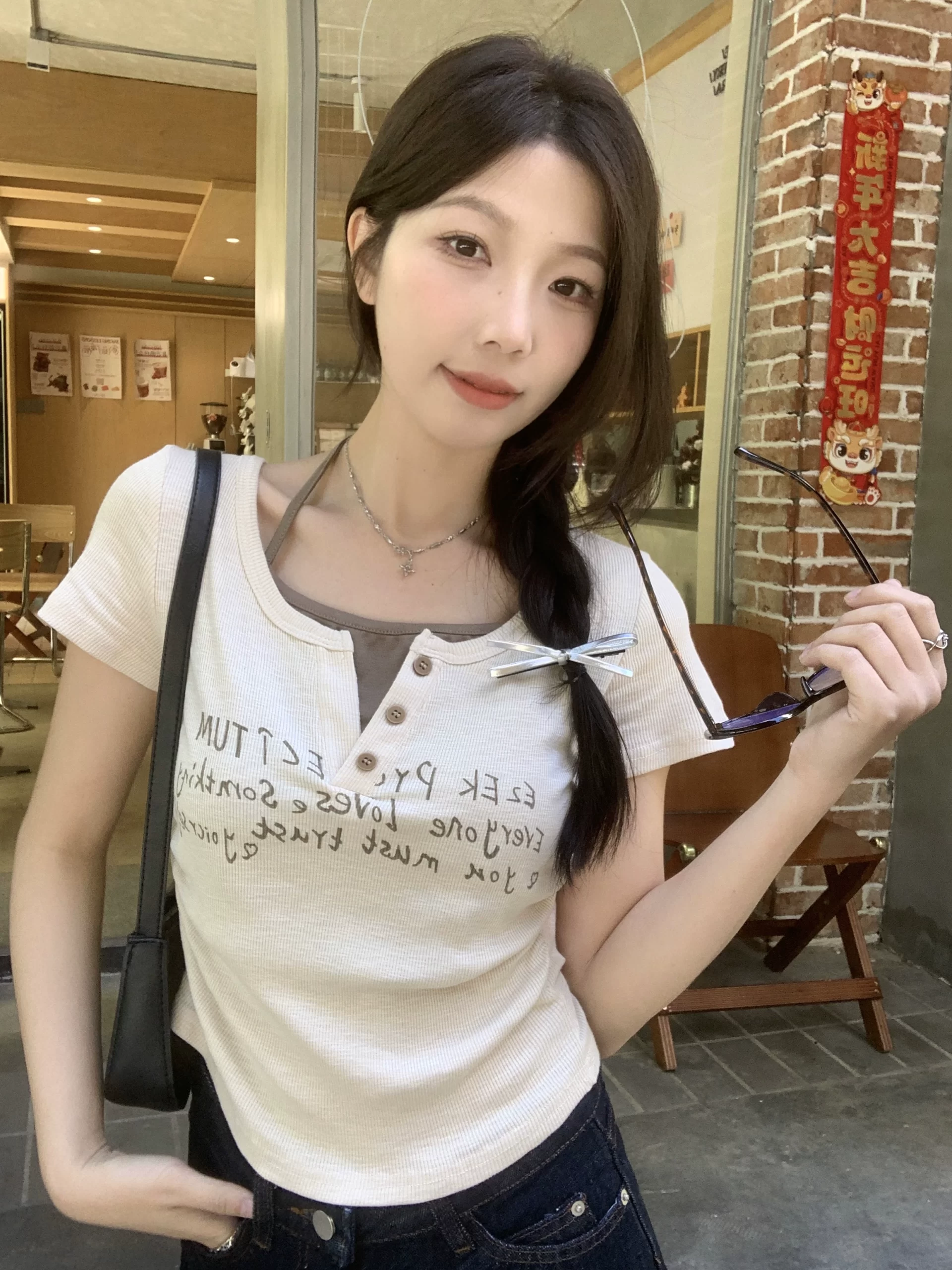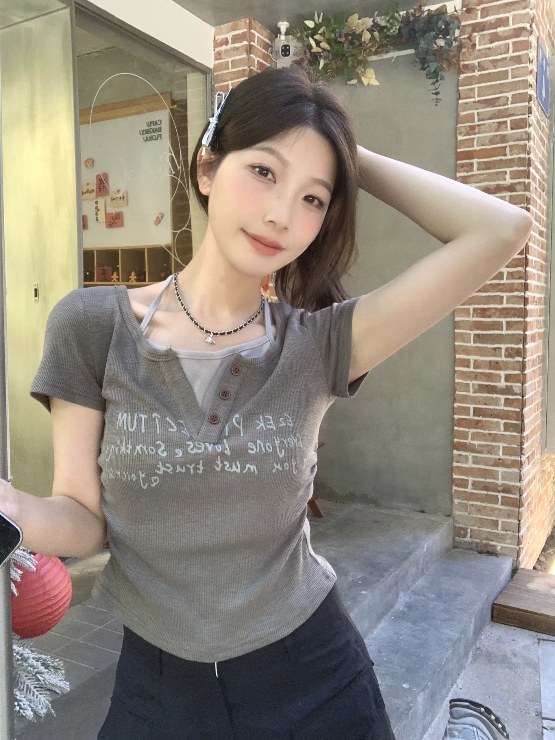 | nameOriginal | Retro short-sleeved T-shirt summer design printed halter neck |