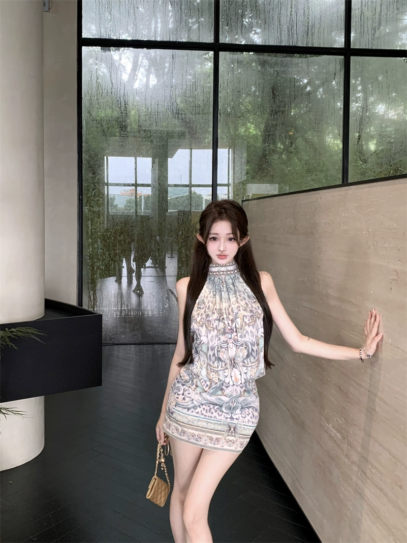 Retro shoulder-shoulder dress summer hip-hugging halter neck strap