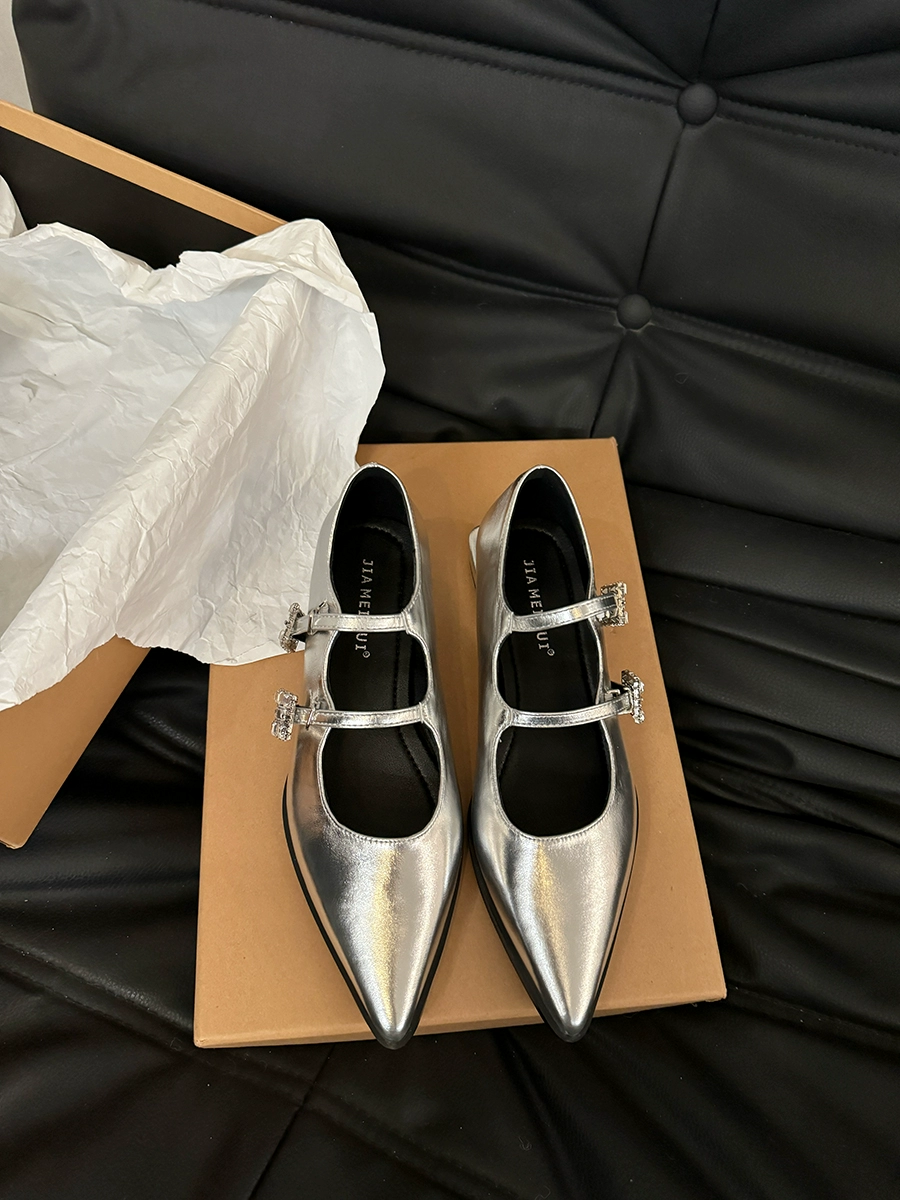 | nameOriginal | Retro silver pointed toe spring and autumn elegant lady shoes |
