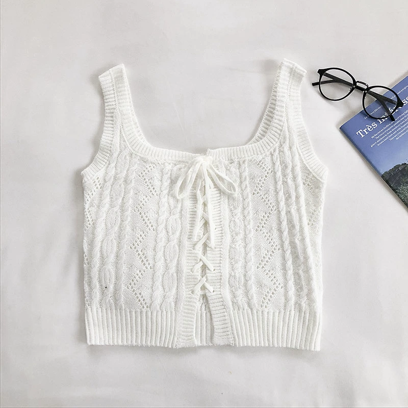 | nameOriginal | Retro slim fit hollow knitted camisole |