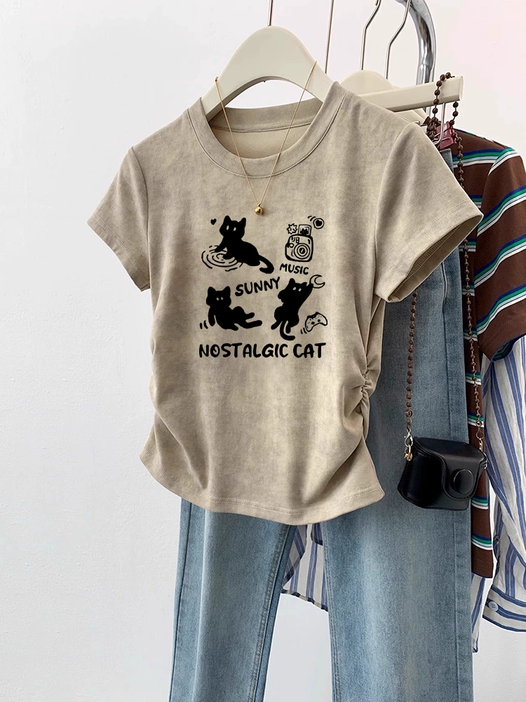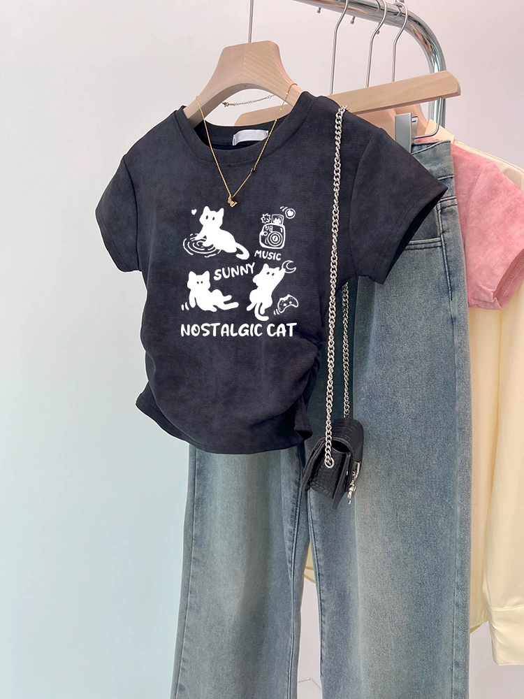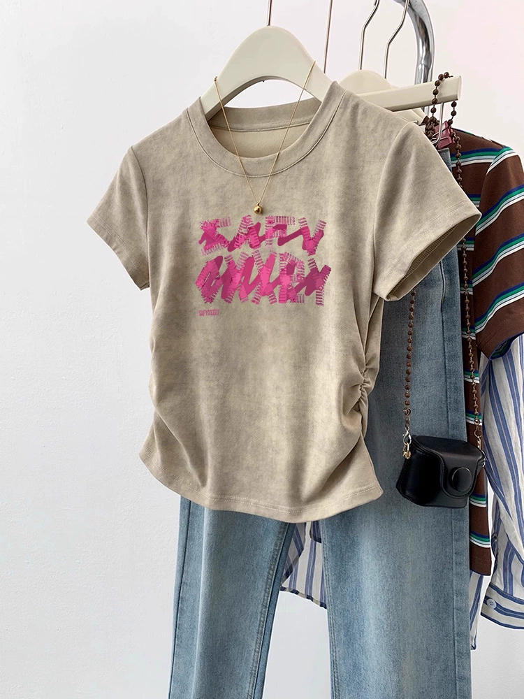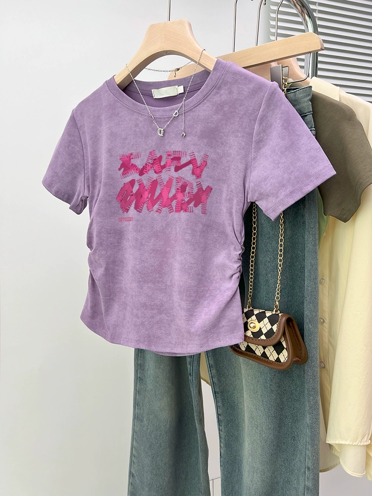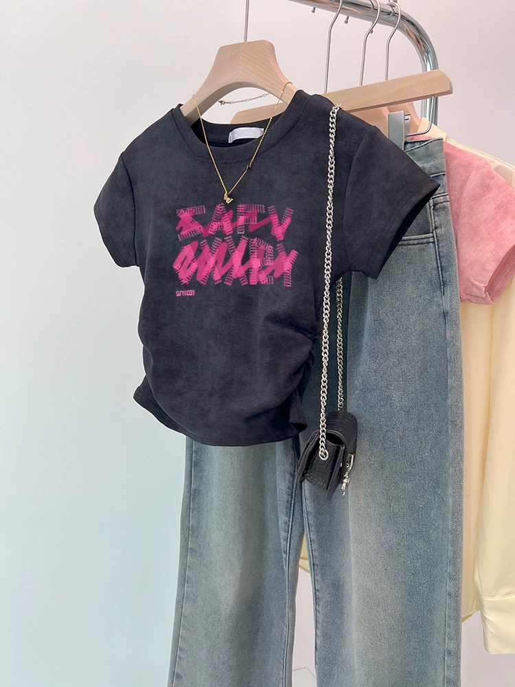 | nameOriginal | Retro slim right shoulder summer new short-sleeved T-shirt |