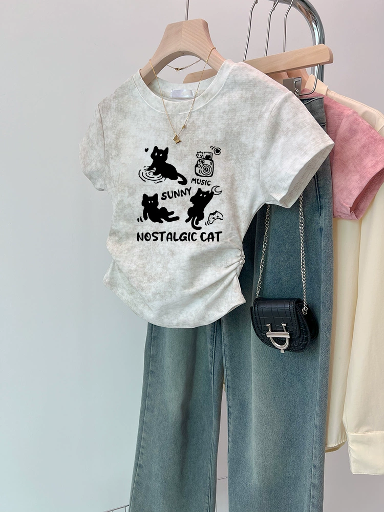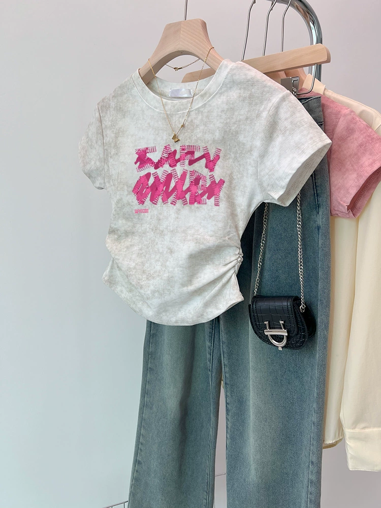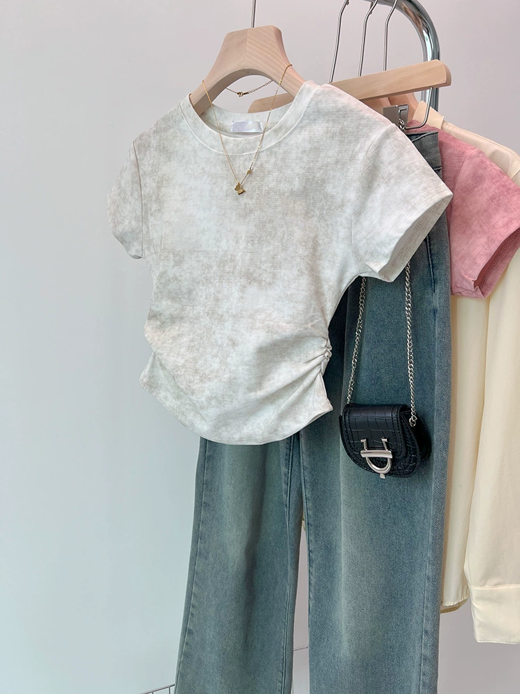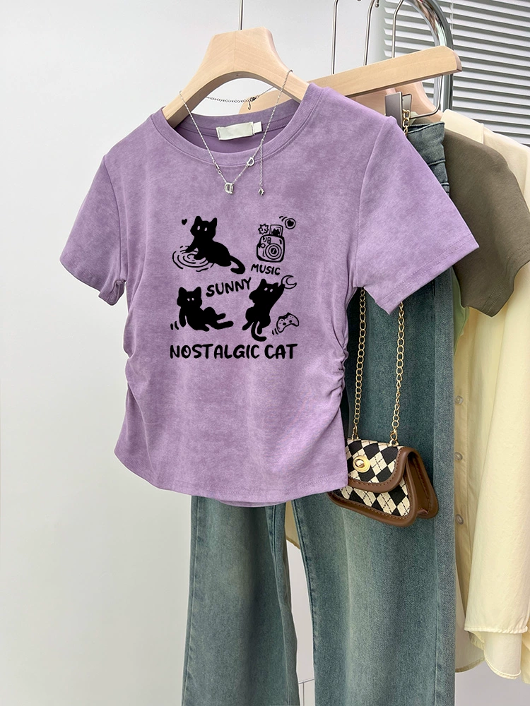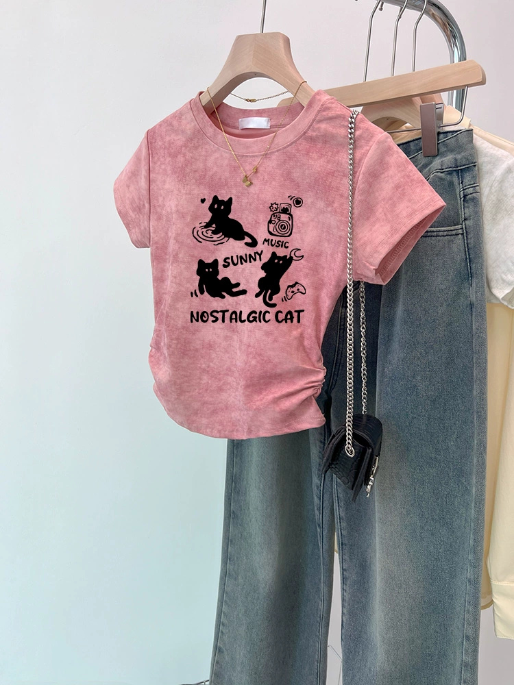 | nameOriginal | Retro slim right shoulder summer new short-sleeved T-shirt |