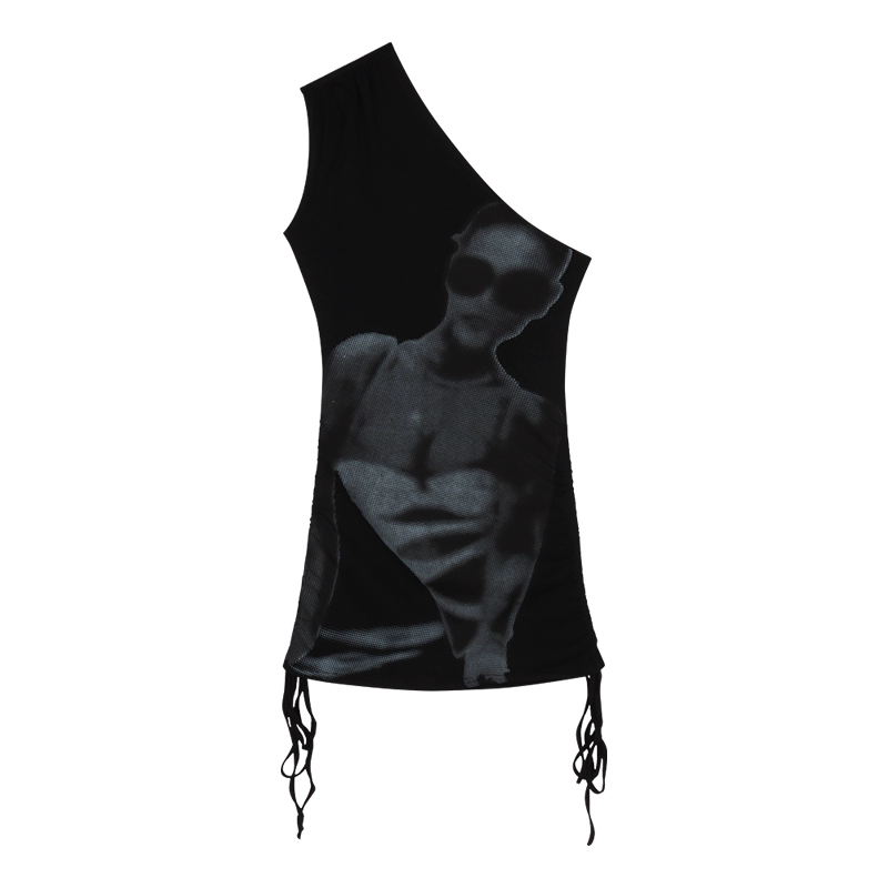 | nameOriginal | Retro sloping shoulder summer tight black short-sleeved dress |