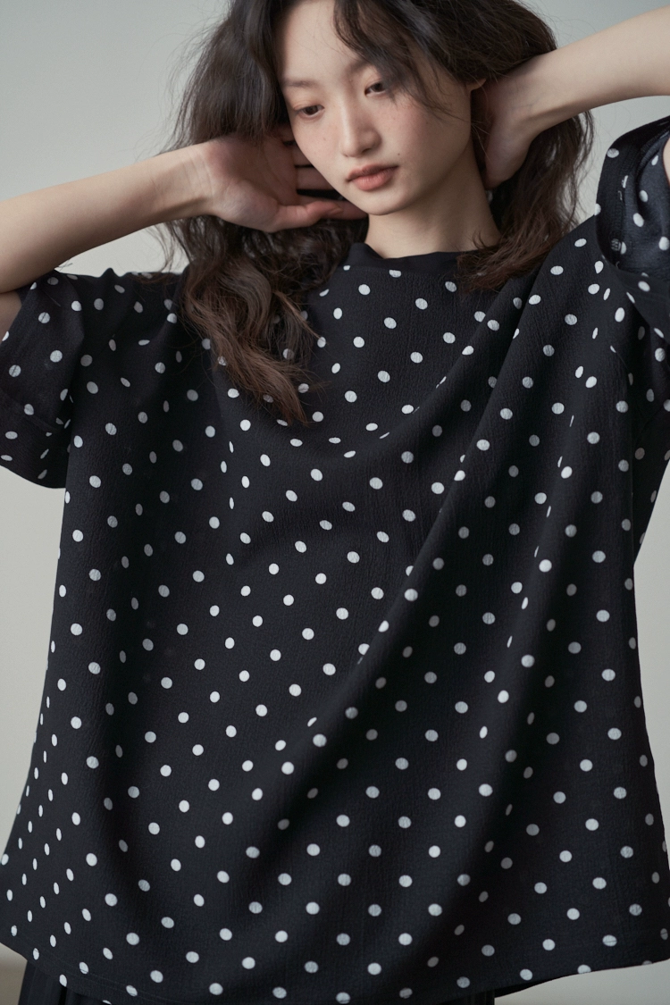 | nameOriginal | Retro small polka dot large version mid-length short-sleeved T-shirt |