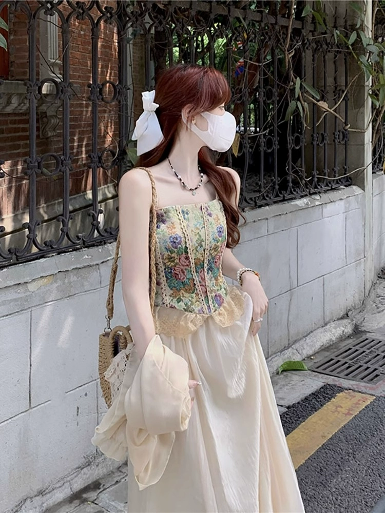 | nameOriginal | Retro spring and summer cardigan three-piece suit seaside tube top |