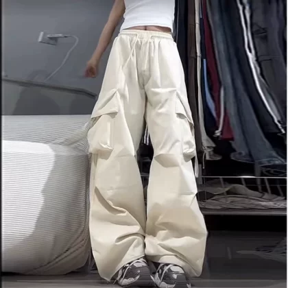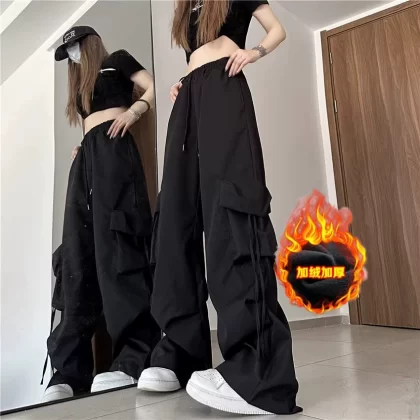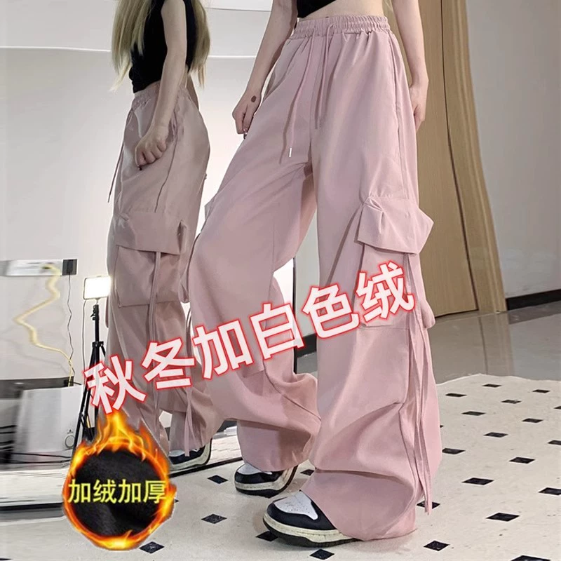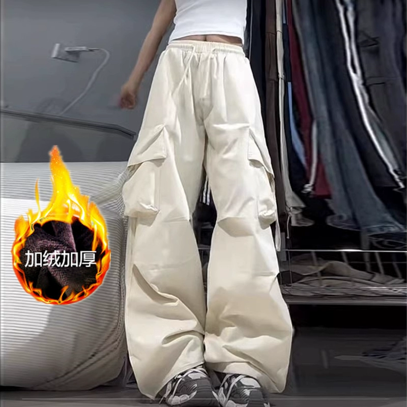 Retro spring autumn and winter high waist and fleece leisure trousers