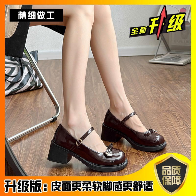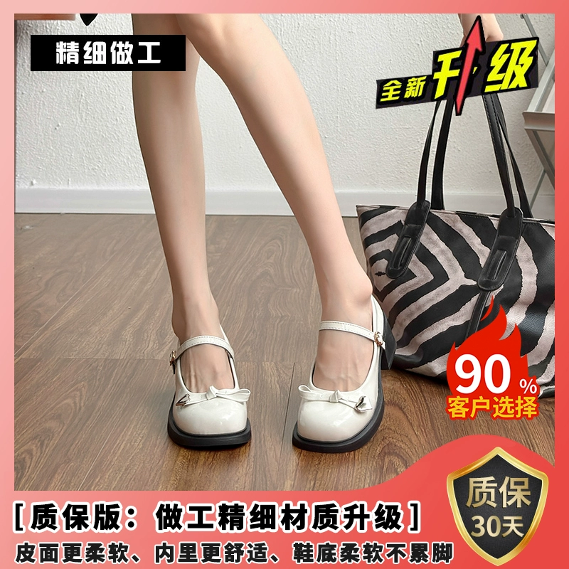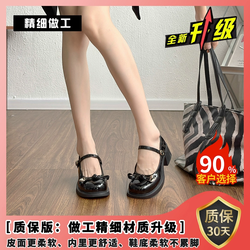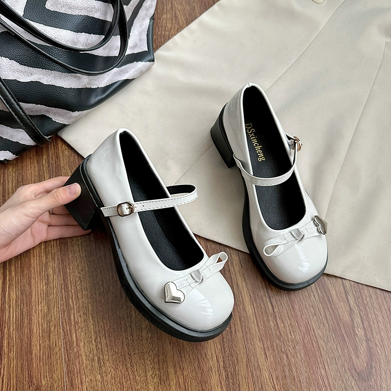 Retro Spring Bow Round Toe Block Heel Mary Jane Shoes