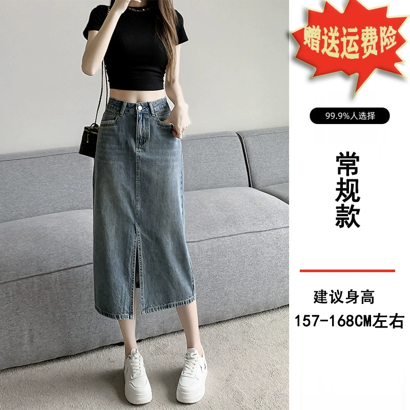 | nameOriginal | Retro straight denim slit mid-length a-line skirt |