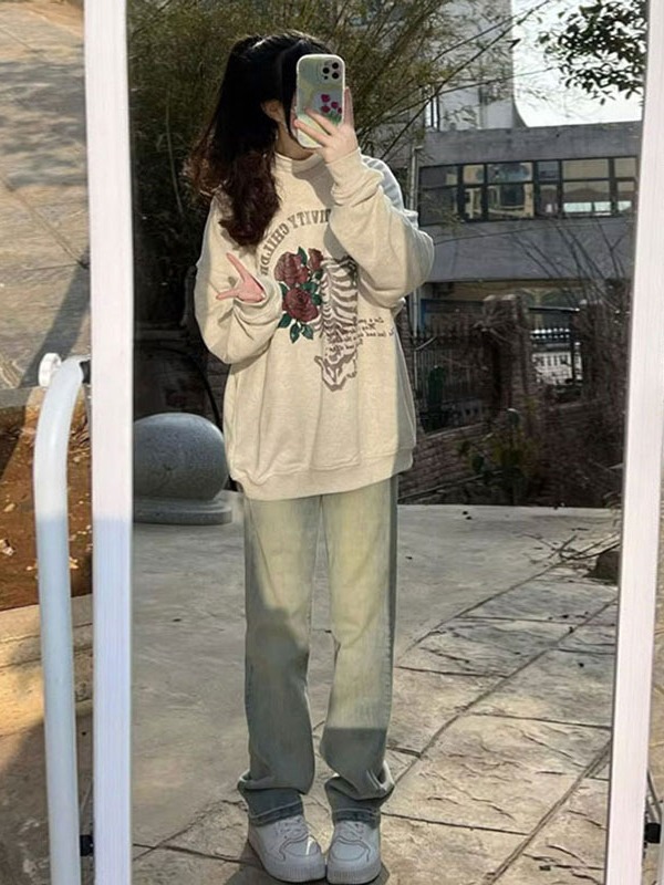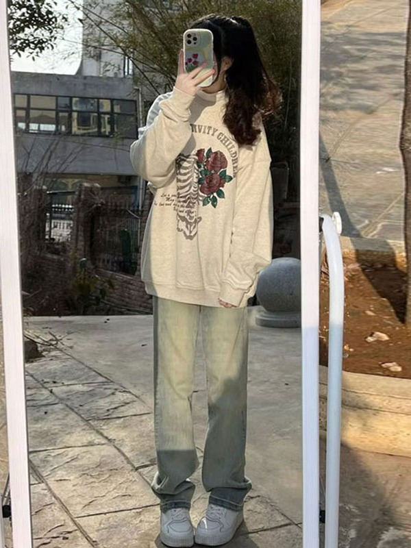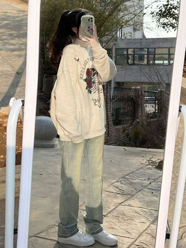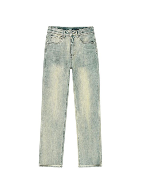 | nameOriginal | Retro straight jeans yellow mud distressed American retro mopping pants narrow straight wide leg jeans for women |