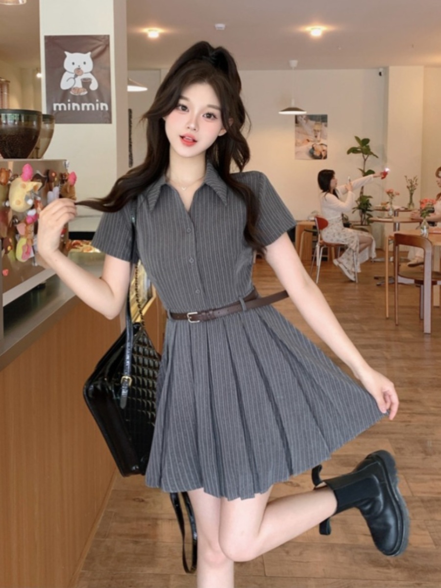| nameOriginal | Retro striped fat girl slimming pleated short-sleeved dress |