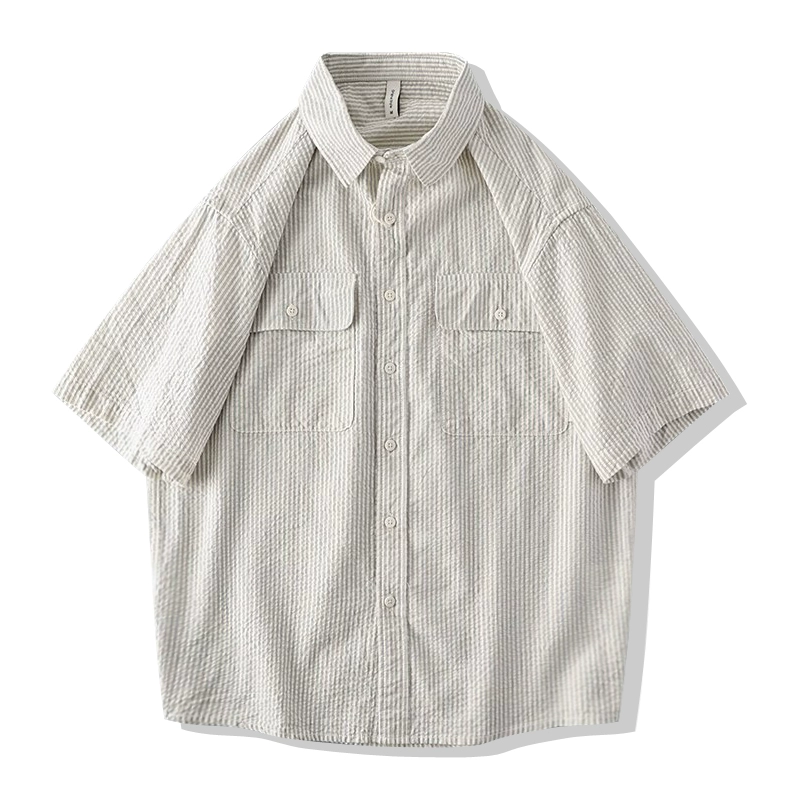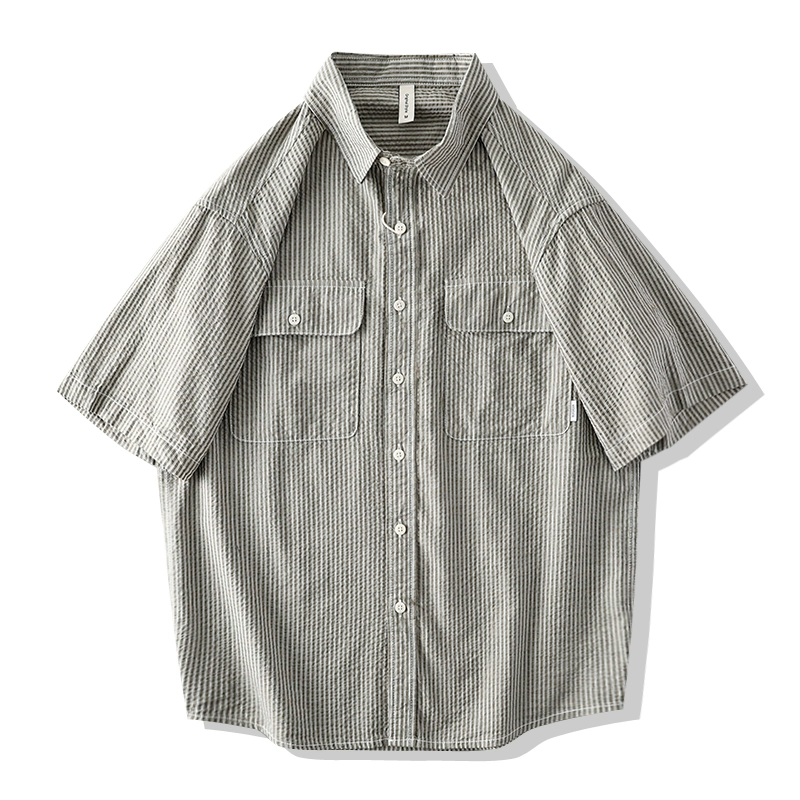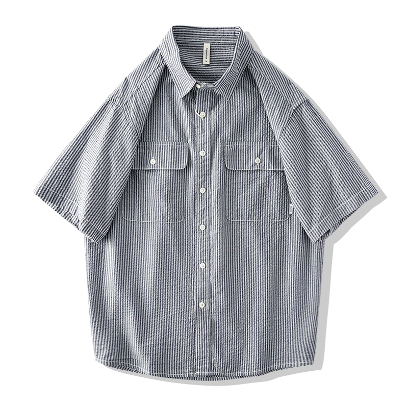 Retro striped workwear short-sleeved pure cotton foreign trade seersucker