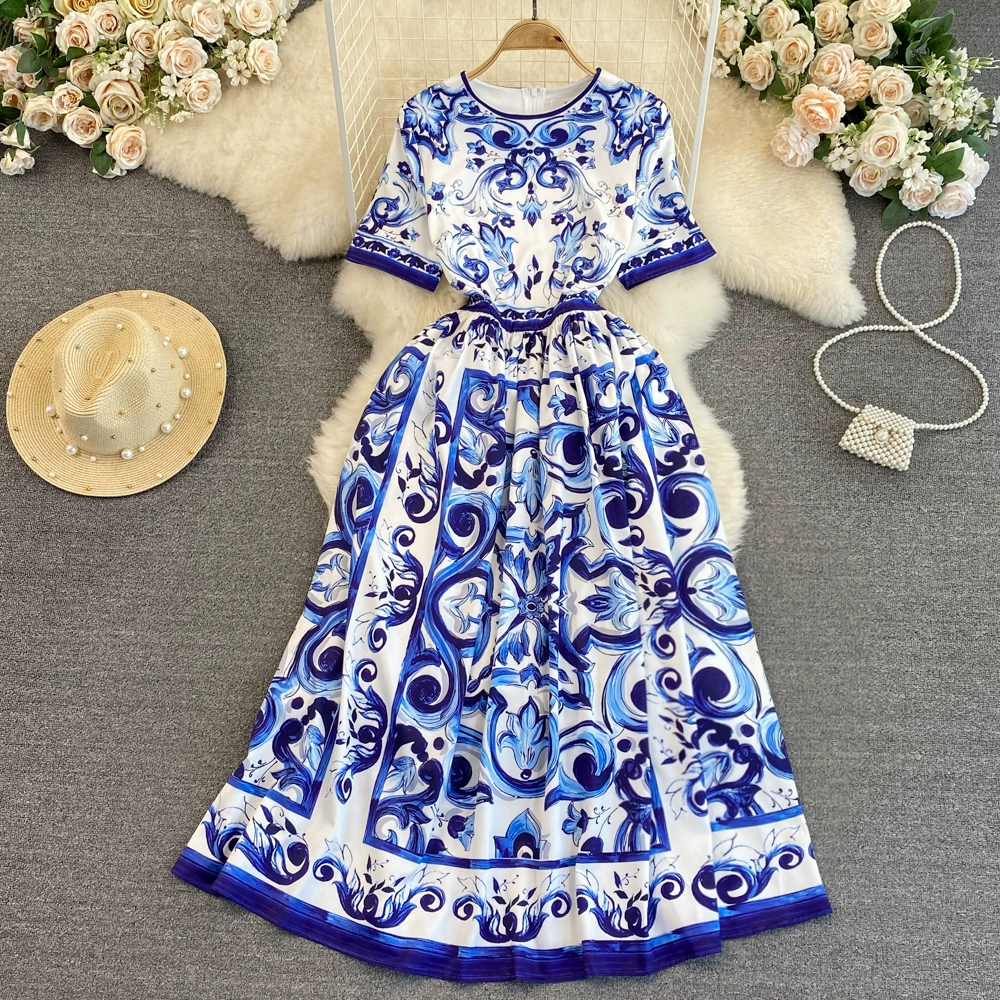 | nameOriginal | Retro style a line dress elegant short sleeve dress |