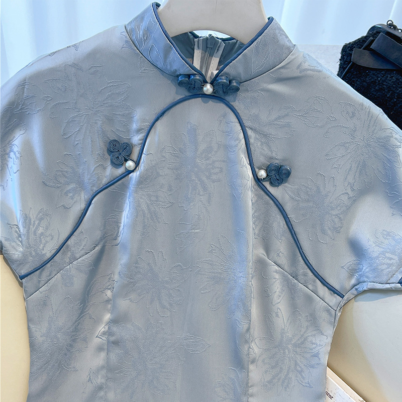 | nameOriginal | Retro Style Elegant Lady Style Blue Elegant Short Sleeve Cheongsam 2024 Summer New Improved Young Style |