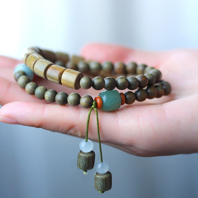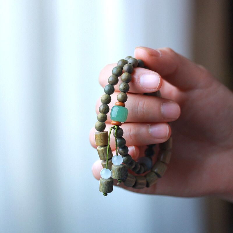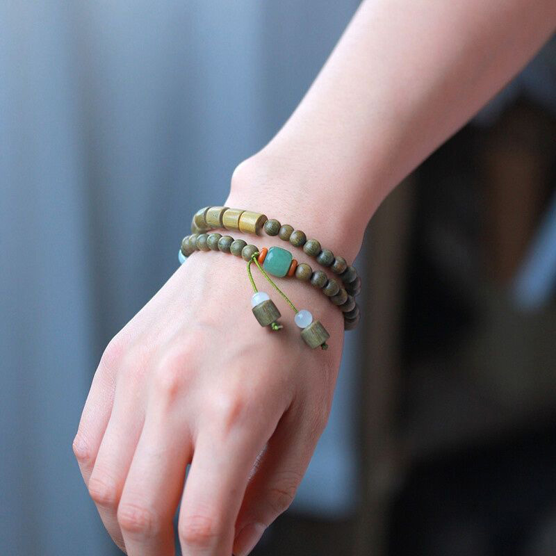 | nameOriginal | Retro style green sandalwood beads bracelet female Mori student double circle beaded bracelet Square sandalwood Chinese style design sense |