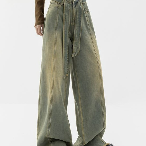 Retro Style Mop Pants Rust-edged Jeans Women's High Waist Straight Loose American Style Retro Jeans Design