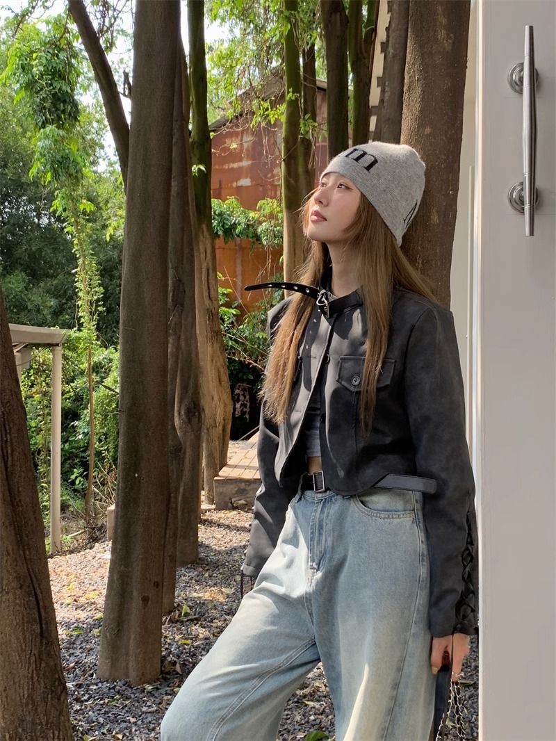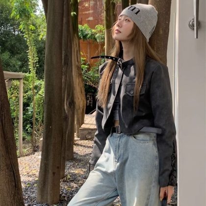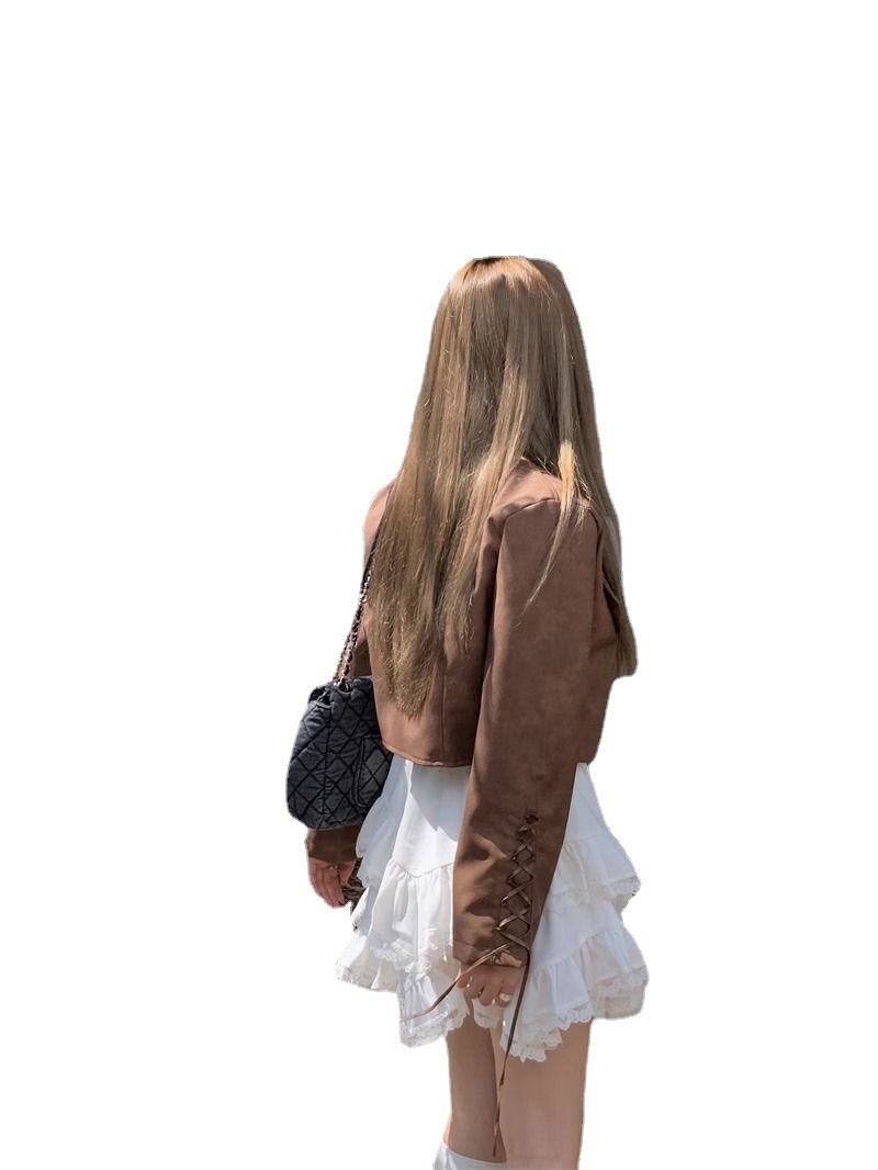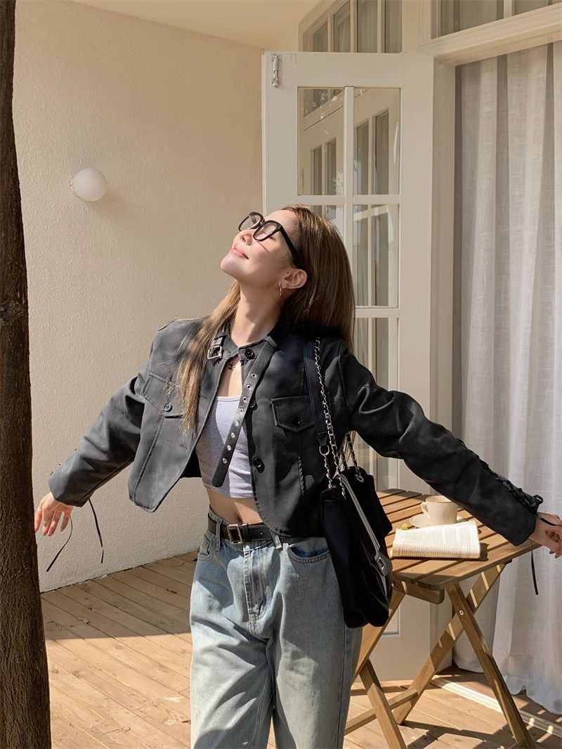 | nameOriginal | Retro style short leather coat Autumn New elegant design niche strap chic coat top for women |