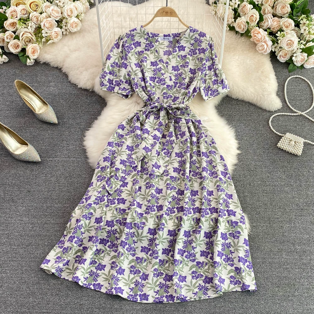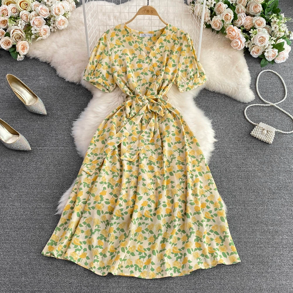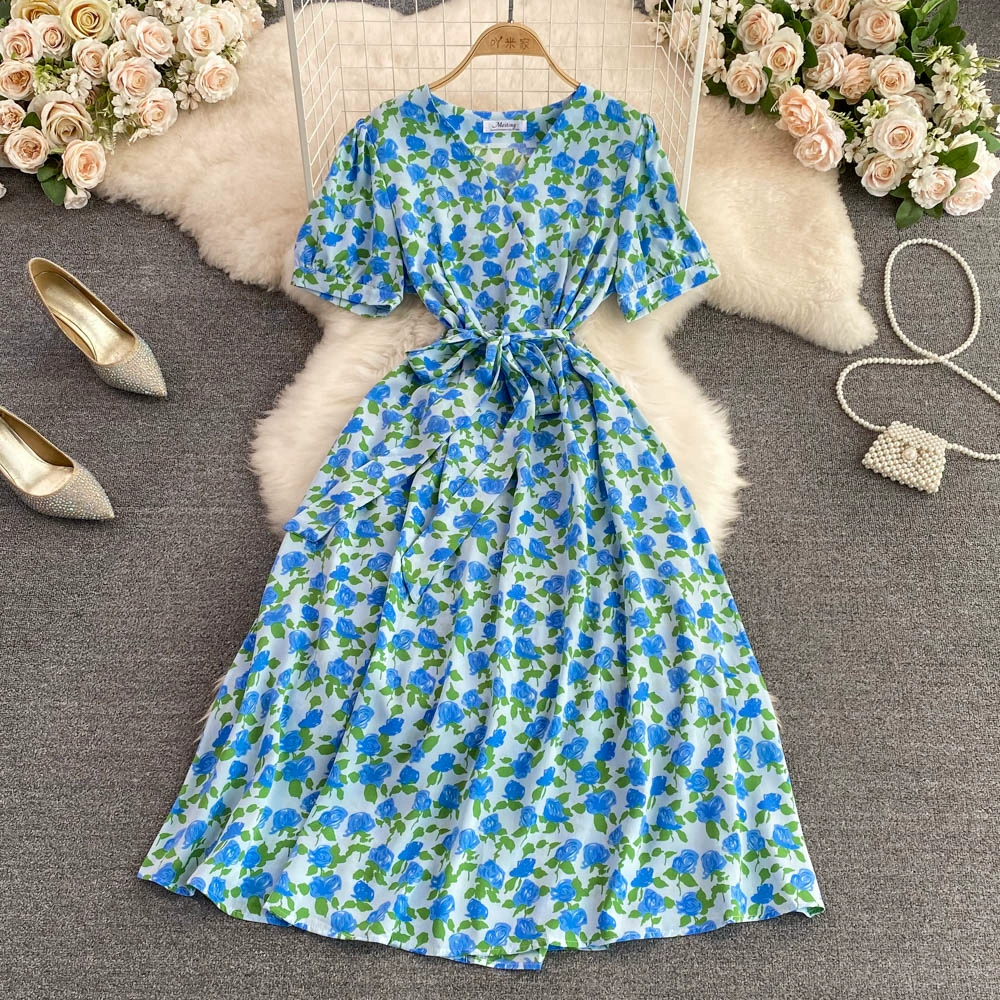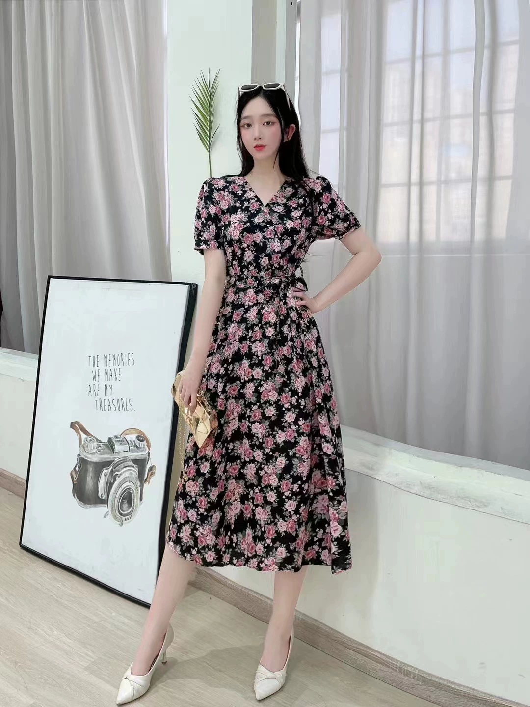 | nameOriginal | Retro style summer new V-neck A-line floral skirt with large hem |
