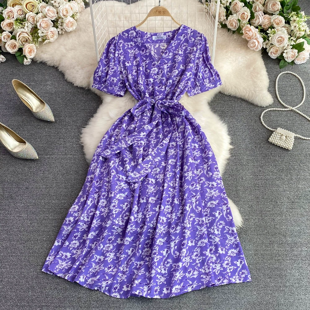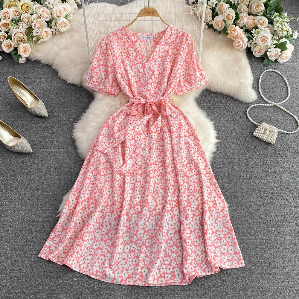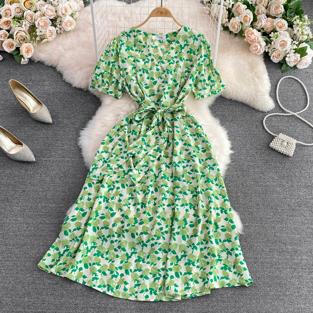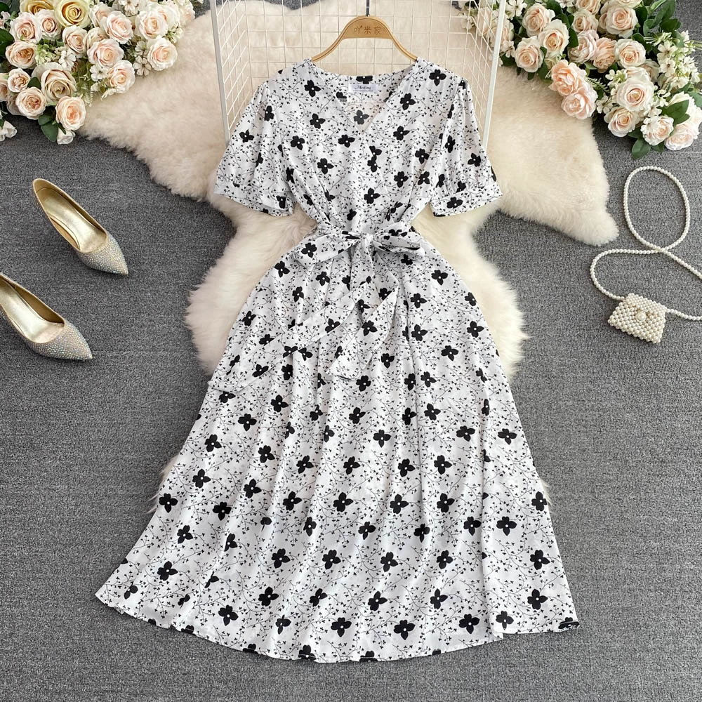 | nameOriginal | Retro style summer new V-neck A-line floral skirt with large hem |