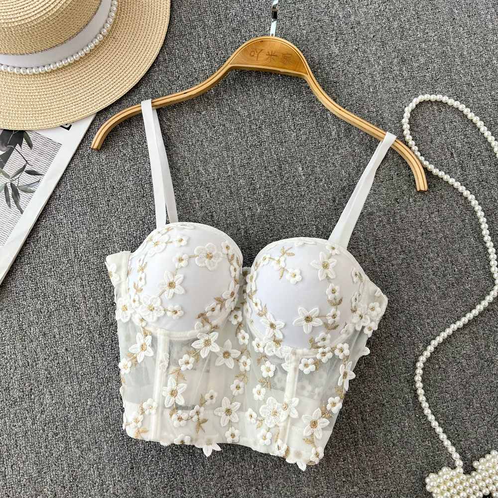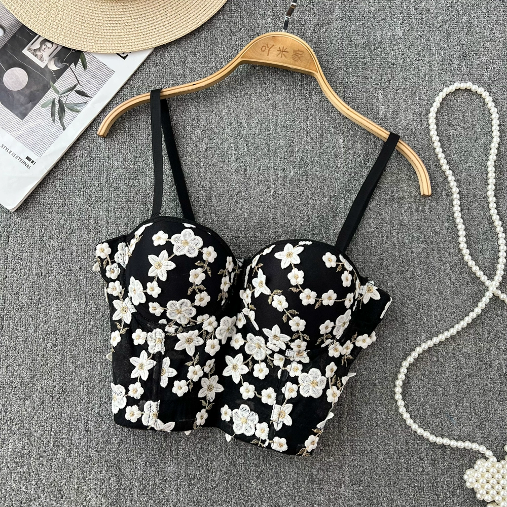 | nameOriginal | Retro style three-dimensional flower embroidered suspender tube top |